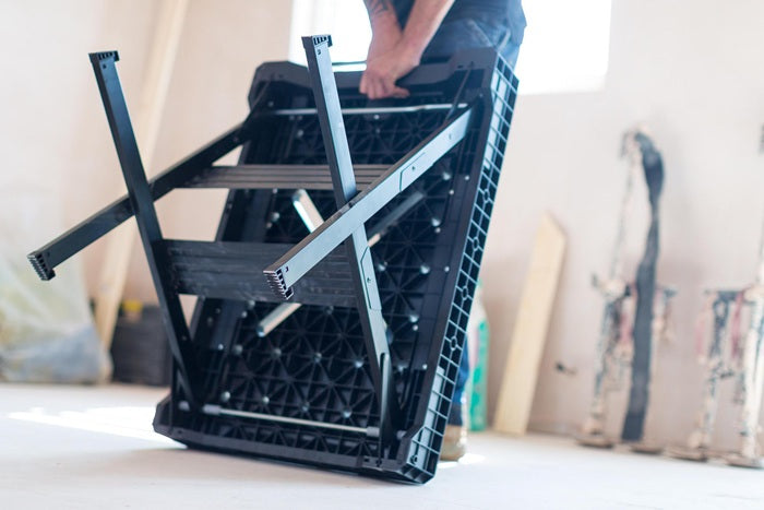 klappbar · 455 kg Tragkraft · Arbeitsfläche 850 x 600 mm · Tragegriff · Metallbeine