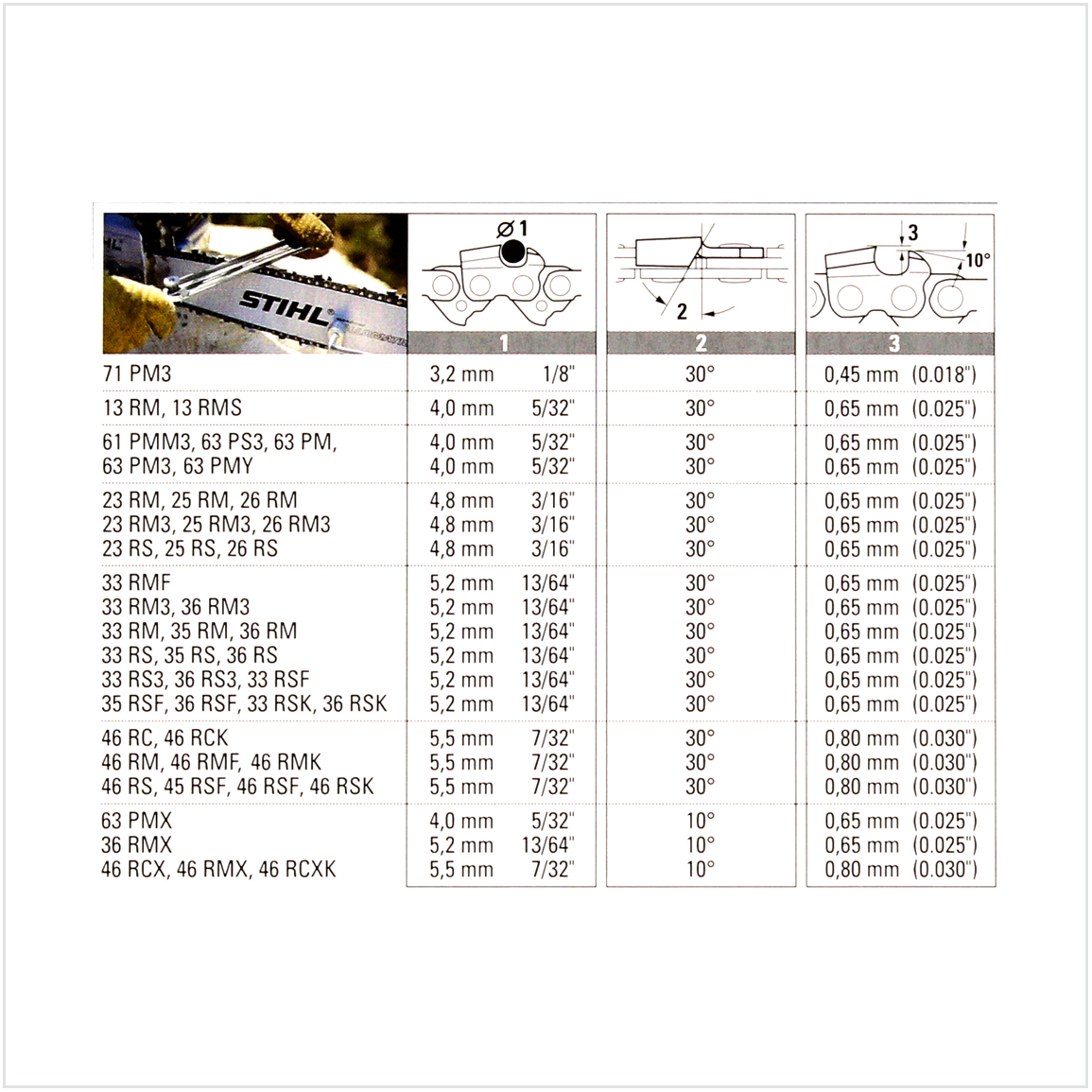 Die schmale Führungsschiene für leichte Stihl Kettensägen. Durch das geringe Gewicht bei erhöhter Schnittleistung wird nur wenig Kraft für die Arbeit benötigt,  Diese Hochleistungs-Führungsschiene wird aus federhartem Stahl gefertigt, die Kettenlaufbahn ist induktiv gehärtet. Geeignet für die feingliedrige Sägeketten 3/8" Picco Micro oder1/4" Picco Micro 3. Diese Sägekette für die Einstiegsklasse ist robust, vibrationsarm und belastbar. Die Kette hat einen schmalen Schnitt und ist dadurch sehr rückschlagsarm und äußerst schnittstark. Das Oilomatic Schmiersystem von Stihl sorgt für noch weniger Reibung und Verschleiß.
