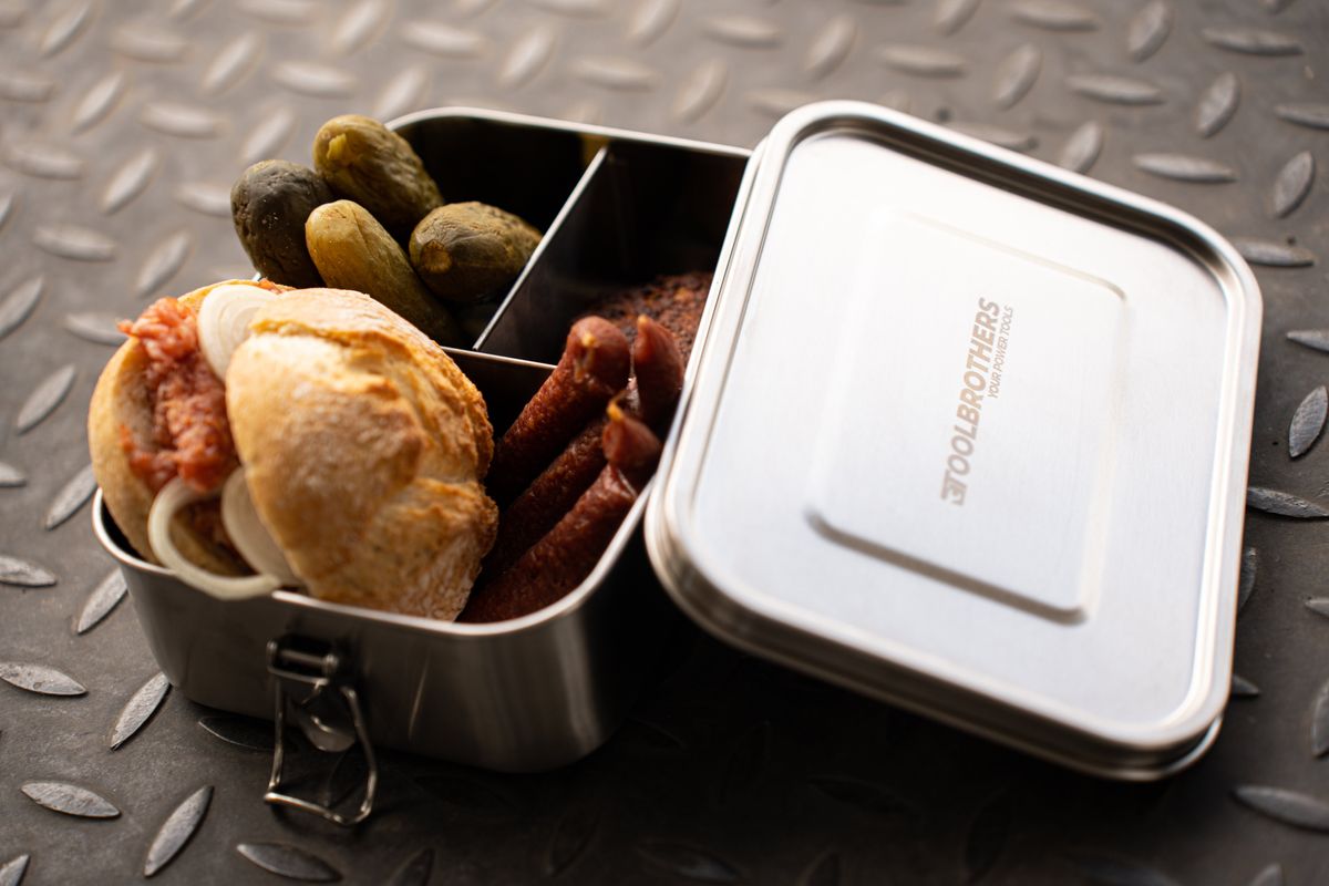 Die hochwertig verarbeitete Brotdose aus dem Hause Toolbrothers ist der perfekte Begleiter für jeden hungrigen Handwerker. Dank der ausgewählten Materialien ist eine lange Lebensdauer und eine hohe Widerstandsfähigkeit gegeben. Das Ausspülen ist Dank der gut erreichbaren Ecken kein Thema. Ein variabel verstellbarer Trenner kann spielend einfach so platziert werden wie man Ihn benötigt. Der Deckel besteht aus hochwertigen Edelstahl. Der raffinierte Kippverschluss aus Edelstahl gewährleistet ebenfalls eine lange Lebensdauer. Toolbrothers ist ein StartUp welches sich zur Aufgabe gemacht hat Werkzeuge aller Art Vergleichbar zu machen.
