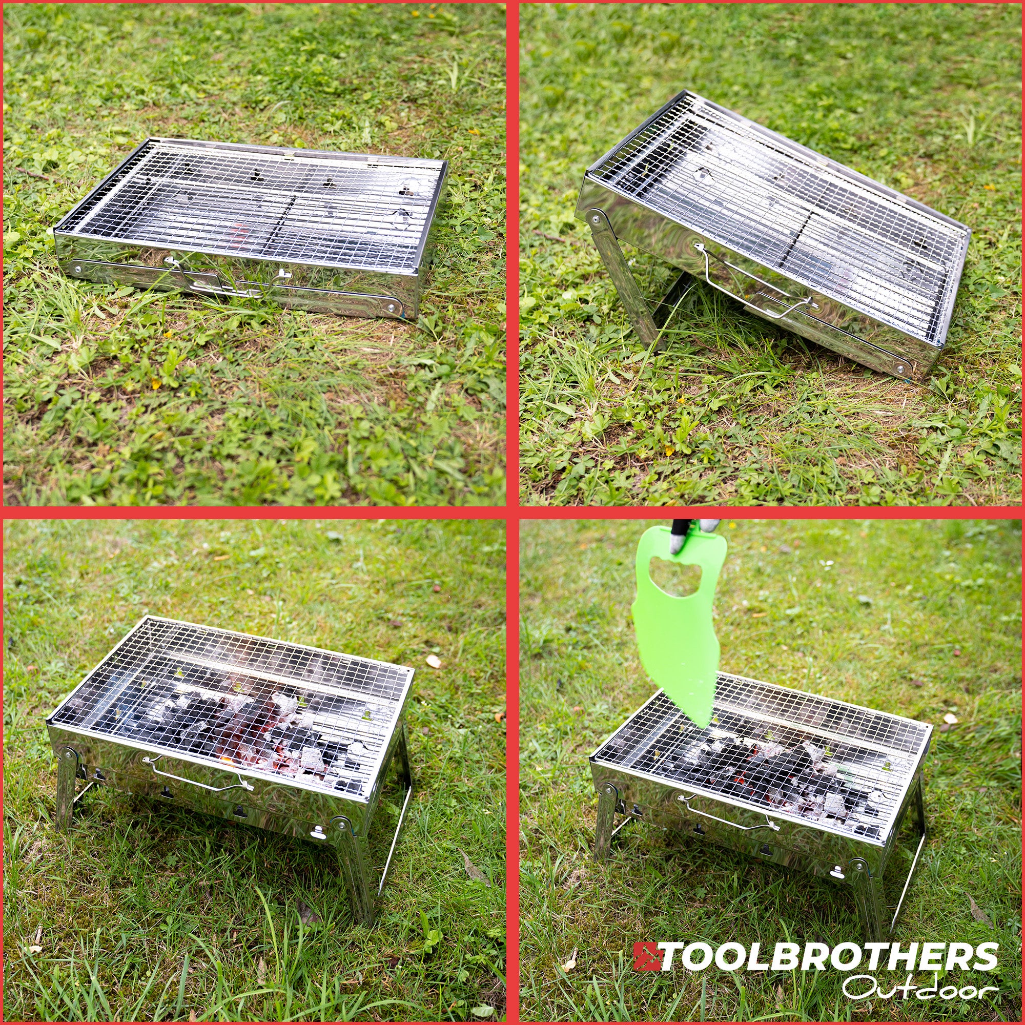 Toolbrothers Outdoor tragbarer Holzkohle Edelstahl Grill für Camping werkzeuglose Montage 43 x 29 x 23 cm Silber Smoker BBQ Pit Grill