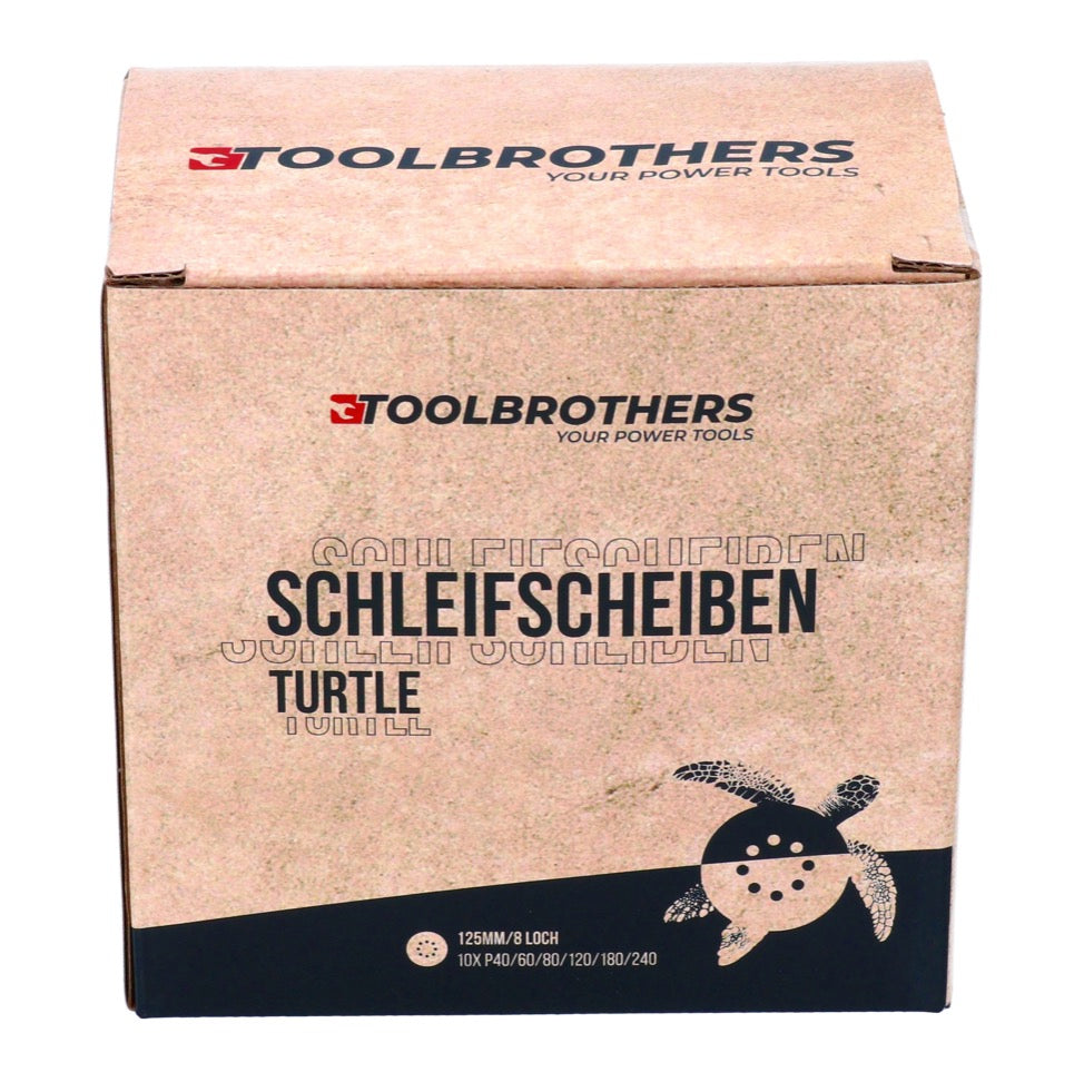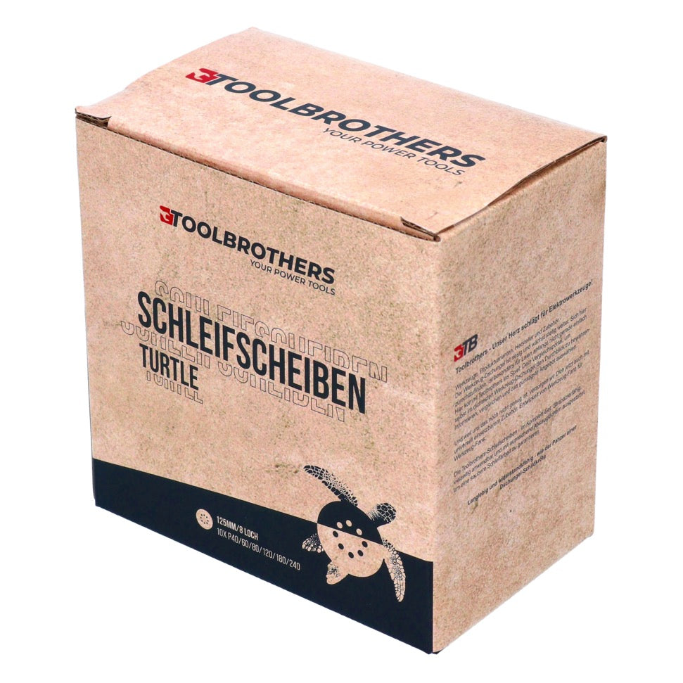 Toolbrothers TURTLE Schleifset 125mm Klett 8 Loch je 10x P40 / P60 / P80 / P120 / P180 / P240 für Hartholz, Weichholz, Lack, Stein, Stahl, Aluminium, Furnier