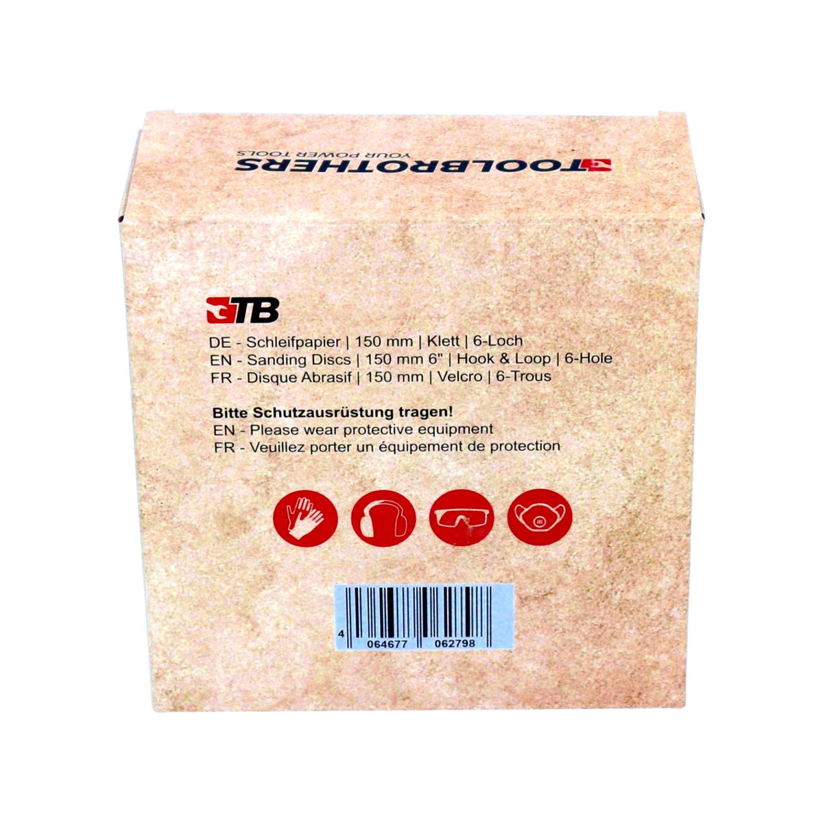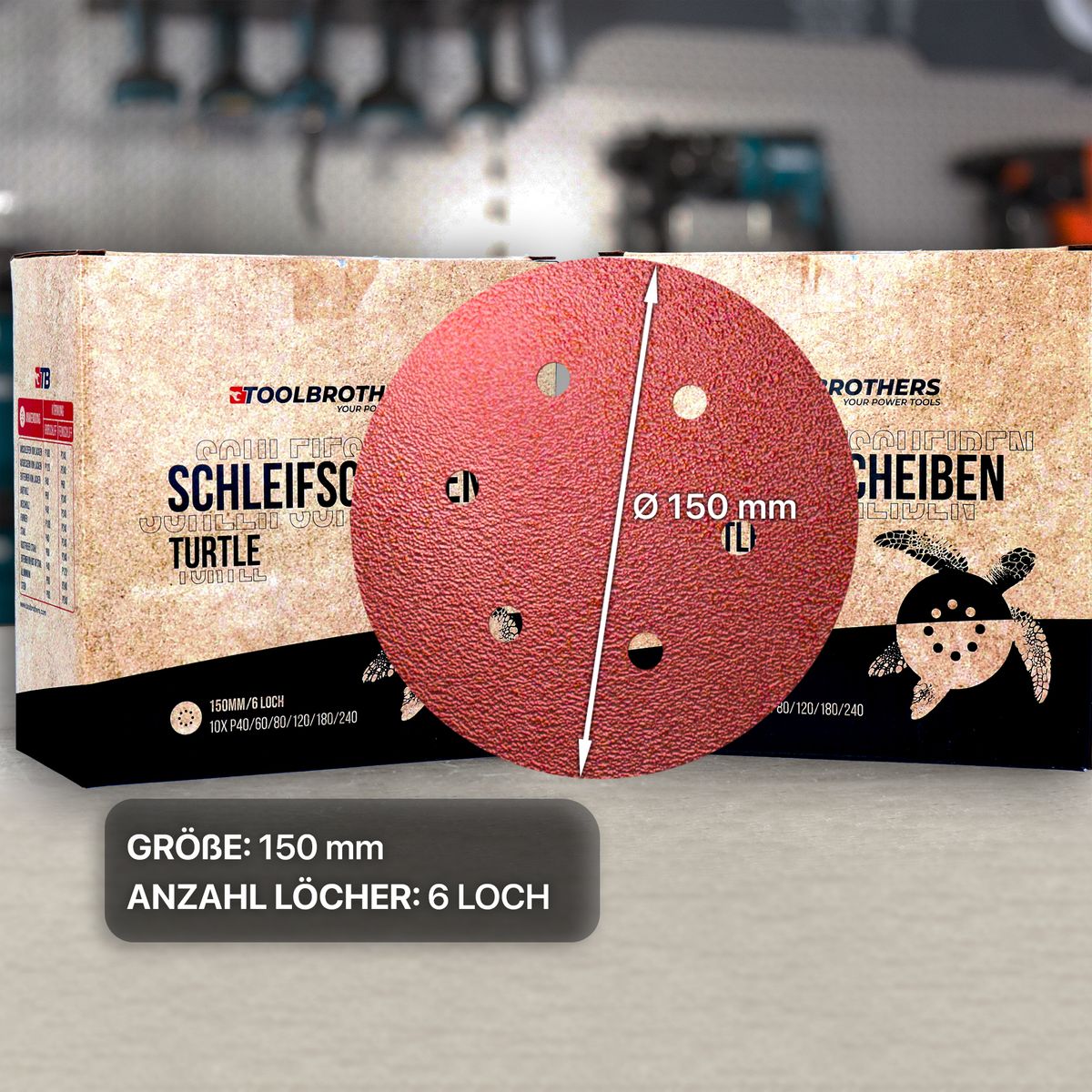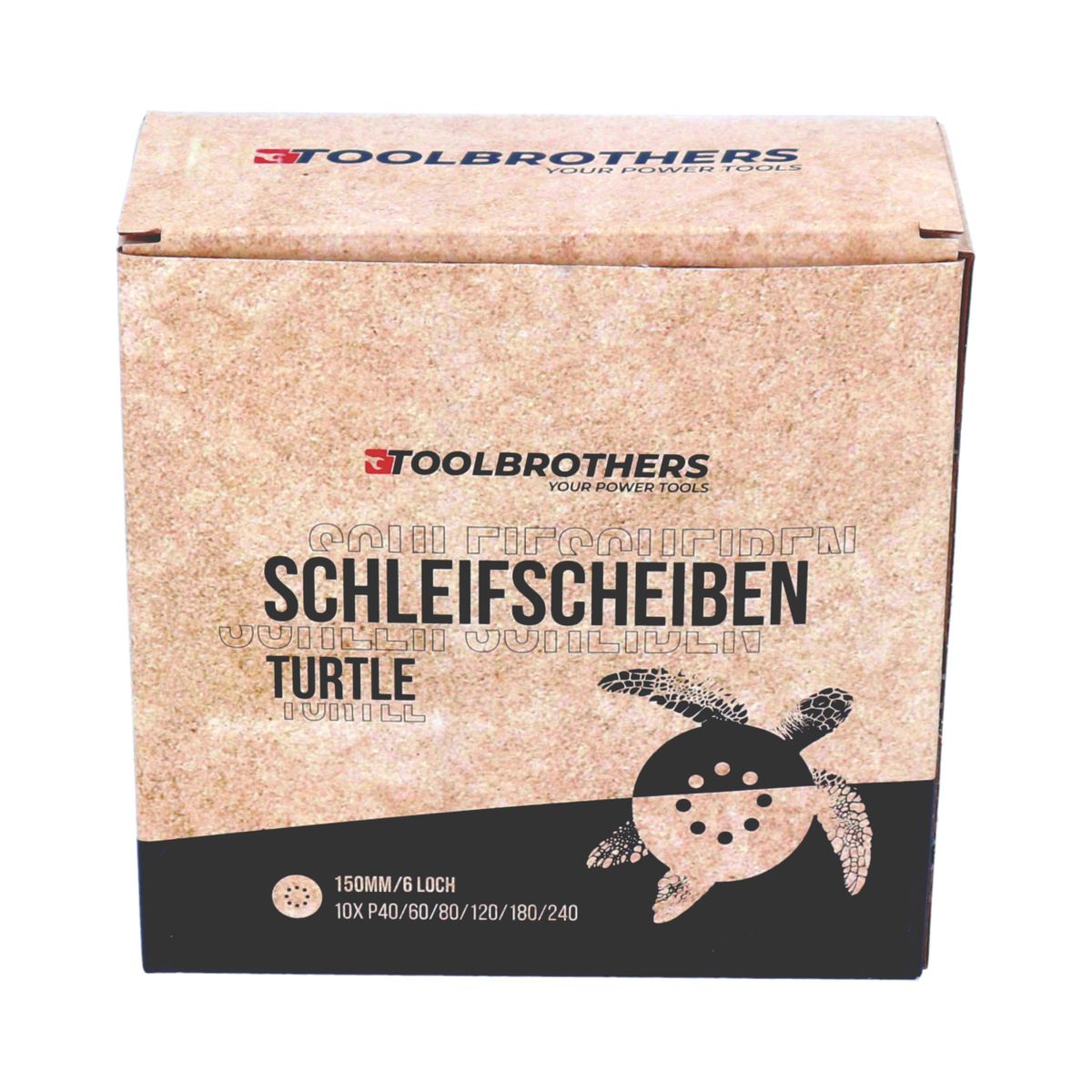 Toolbrothers TURTLE Schleifset 4 Packungen 240x Schleifscheiben 150 mm Klett 6 Loch je 40x P40 / P60 / P80 / P120 / P180 / P240 für Hartholz, Weichholz, Lack, Stein, Stahl, Aluminium, Furnier