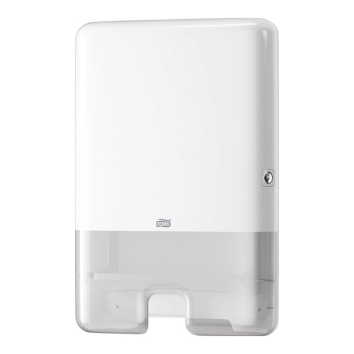 für Multifold Handtücher · schlagfestes Kunststoffgehäuse · abschließbar · schnelle hygienische Einzelblattentnahme (Multifold) · sparsamer Verbrauch · halbtransparentes Sichtfenster · weiß