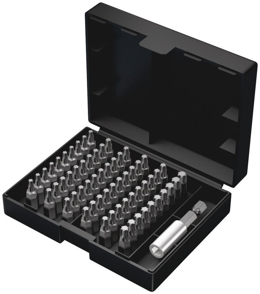 1x Bit-Sortiment, Bit-Safe 61 Universal 4, 61-teilig, 1x 899/4/1 K Universalhalter, 1/4 Zoll x 50 mm x 1/4 Zoll, 60x 867/1 TORX® Bits: 3x TX 10x25, 7x TX 15x25, 20x TX 20x25, 20x TX 25x25, 7x TX 30x25, 3x TX 40x25