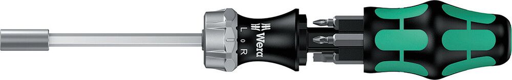 mit Ratschenfunktion, integriertem Magazin, magnetischer Bitaufnahme und Mehrkomponenten-Kraftform-Griff · Ratsche umschaltbar (rechts/fixiert/links) geeignet für Bits mit 6,3 mm (1/4")-Außensechskantantrieb C 6,3 · maximales Drehmoment bis zu 50 N.m · 6-kant-Klinge