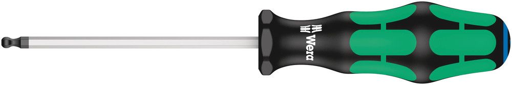 mit 2-Komponenten-Griff · Klinge aus Molybdän-Vanadium-Stahl nicromatt mit Black Point Spitze und Kugelkopf · (ermöglicht das Schrauben bis zu einem Winkel von 20°) · Größenleitsystem · Take it easy Toolfinder System für Innensechskant-Schrauben