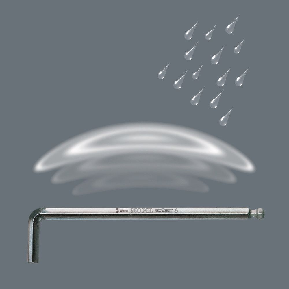 mit Kugelköpfen · lang · mit Hex-Plus-Profil (verhindert das Runddrehen von Innensechskantschrauben) · aus legiertem Werzeugstahl · verchromt · langer Schenkel mit Kugelkopf ermöglicht das Schrauben bis zu einem Winkel von 20° · kurzer Schenkel gefast · SW 1,5 mit herkömmlichen Sechskantprofil Der mit einem Schiebeschalter zu öffnende Winkelschlüsselclip sorgt für dauerhafte Klemmung der Winkelschlüssel und bietet einen schnellen und sicheren Zugriff