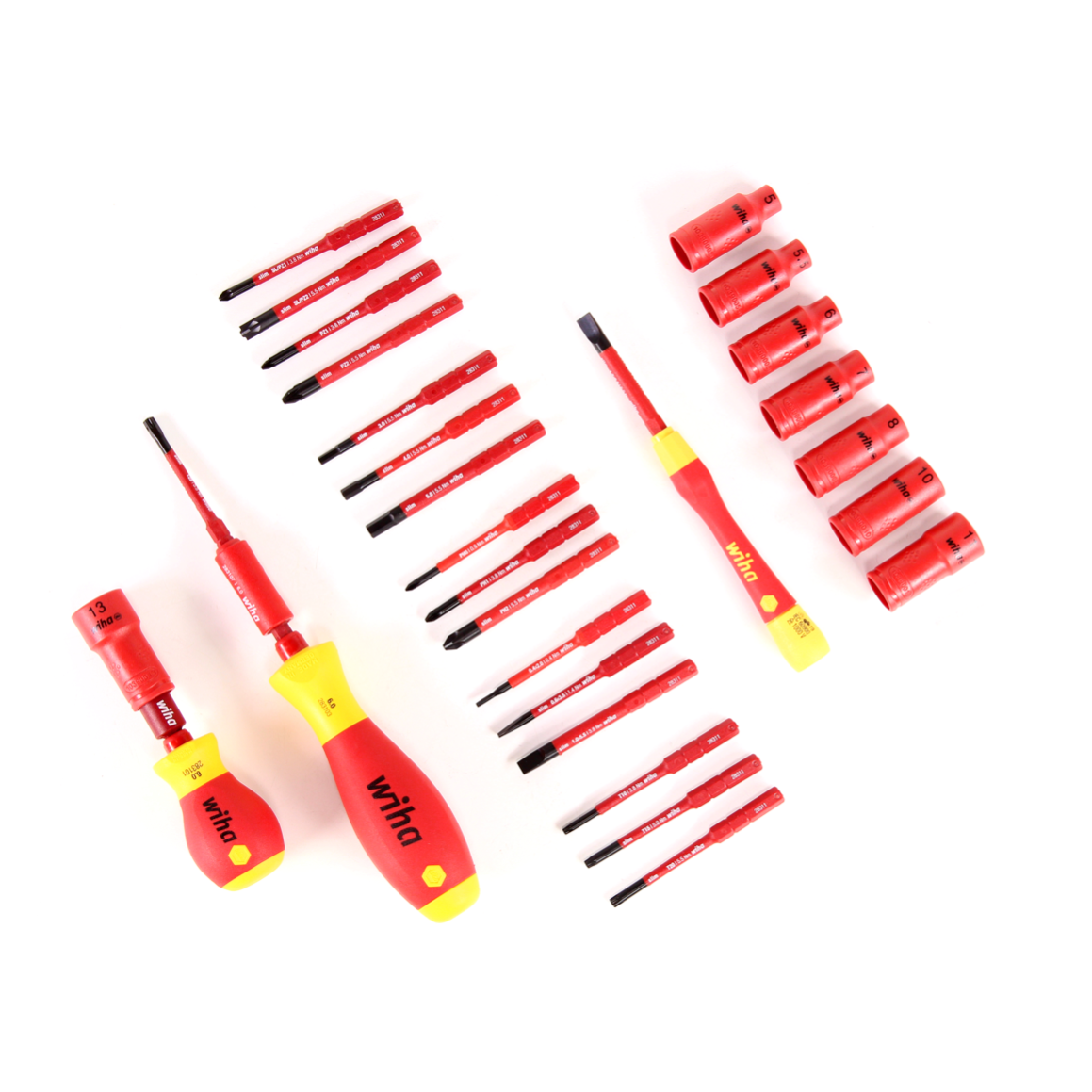 Das 31-teilige Elektriker Werkzeug Set von Wiha überzeugt durch sein Umfangreiches Sortiment und die geprüfte Robustheit und Qualität der einzelnen Werkzeugbestandteile. Die Werkzeuge sind alle sicher und geordnet in einer robusten, übersichtlichen Tasche untergebracht. Wiha slimBits gewährleisten einen guten und geschützten Zugang zu tief liegenden Schrauben und erhöht deswegen Ihre Sicherheit. Sie sparen sich platz durch das umfangreiche Wechselbitsystem und Wechselbare Steckschlüsseleinsätze. Jedes Werkzeug wurde einzeln bei 10.000 V AC getestet und zugelassen für 1.000 V AC. Bei Arbeiten an unterschiedlichen Einsatzorten wie z.B. auf Baustellen, an Solaranlagen und in Schaltschranken werden viele verschiedene Schraubprofile benötigt. Das 31-teilige -Set ist flexibel einsetzbar, da es alle gängigen Schraubprofile abdeckt. Ein weiterer Pluspunkt ist die multifunktionale Einsetzbarkeit der Tasche. Die Lasche zum Aufhängen an der Wand sowie der herausnehmbare Einlegeboden schaffen einen zusätzlichen Mehrwert. Dank der Wiha slimTechnology können die enthaltenen slimBits mit ihrer bis zu 33% schlankeren Klingen auch tiefliegende Schraub- und Federelemente mühelos erreichen. In Kombination mit dem extra kurzen Stubby-Griff können die Schrauben insbesondere an Engstellen mühelos erreicht werden. Für Feine und filigrane Verschraubungen ist der PicoFinish-Handgriff ideal geeignet. Der große SoftFinish Längsgriff kommt zum Einsatz, wenn in Kombination mit den größeren slimBits Profilen beim Verschrauben mehr Kraft aufgebracht werden muss. Jedes Werkzeug im Set wurde gemäß der internationalen Norm IEC 60900 einer Steckprüfung unterzogen und ermöglicht ein sicheres Arbeiten im Bereich von spannungsführenden Teilen bis 1.000 V AC.