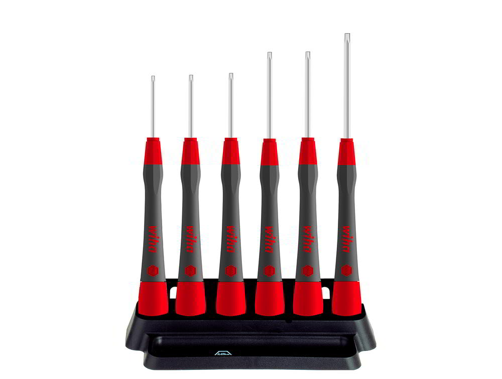 mit PicoFinish-Griff · Zentrierkopf drehbar · Klingen aus Chrom-Vanadium-Molybdän-Stahl · matt verchromt · ChromTop®-Spitze · mit MagicSpring®-Festhaltefeder für die Schraube Inhalt: je 1 Schraubendreher Gr. T 6 / 7 / 8 / 9 / 10 / 15 für Schrauben mit Innen-TORX®-Profil