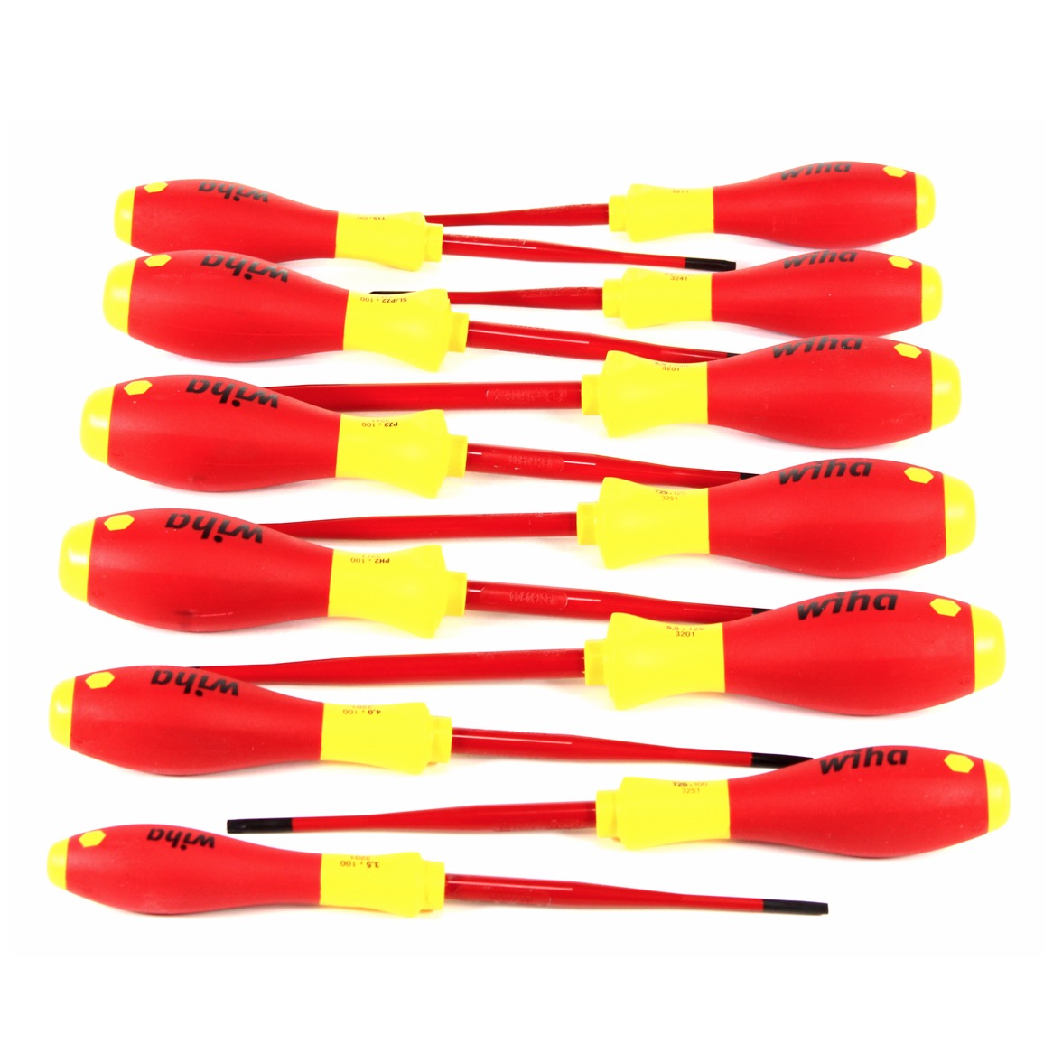Wiha Schraubendreher mit dem ergonomischen SoftFinish®-Griff sind Werkzeuge für den täglichen Profi-Einsatz. Zu jeder Schraubengröße bzw. jedem Schraubenantrieb gibt es einen passenden SoftFinish® Schraubendreher: Mit den langen, schlanken Griffgrößen können dünne Schrauben sicher und schnell eingedreht werden. Für das Eindrehen dicker Schrauben gibt es großvolumige Griffgrößen, mit denen höhere Drehmomente aufgebracht werden können. Außerdem sind die verschiedenen Griffgrößen an die stets gleich große Hand von schraubenden Profis angepasst. Der Abrollschutz und das am Griffende aufgedruckte Schraubensymbol sorgen für effizientes Arbeiten. Bei der speziell für elektrische Anwendungen entwickelten Wiha slimTECHNOLOGY wurde die Schutzlisolation in die Klinge intergriert, um somit bis zu 33% schlankere Klingen zu ermöglichen. So können auch tiefliegende Schraub- und Federelemente mühelos erreicht werden. Die isolierten Schraubendreher werden gemäß der internationalen Norm IEC 60900 einer Stückprüfung unterzogen und ermöglichen ein sicheres Arbeiten an unter Spannung stehenden Teilen bis 1.000 V AC.
