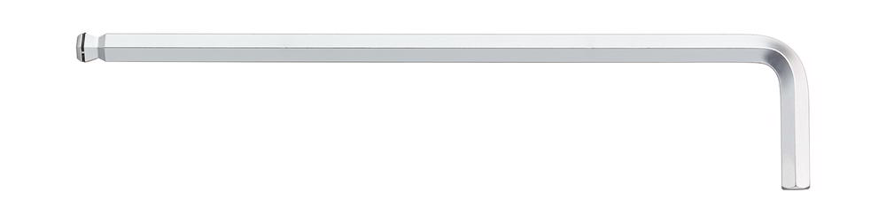 extra lang · mit Kugelkopf und Haltering für die Schraube · Chrom-Vanadium-Stahl · verchromt · abgewinkelt · langer Schenkel mit Kugelkopf und Haltering · der Kugelkopf ermöglicht ein Schrauben bis zu einem Winkel von 25° · der Haltering verhindert das Herunterfallen der Schraube · kurzer Schenkel gefast