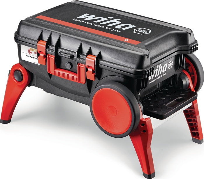 Produktbeschreibung: umfangreiches, praxisorientiertes Sortiment im robustem Schutzkoffer · integrierte Gasdruckdämpfer halten den bestückten Deckel in der gewünschten Position · Koffer staub- und wasserdicht mit Druckausgleichsventil · stapelbar, rollbar · mit integriertem Fahrgestell · ausklappbare Beine für eine erhöhte Entnahmeposition und einen stabilen rutschsicheren Tritt für hochgelegene Arbeiten · große Räder für komfortables rollen auf Treppenstufen und unwegsamen Gelände · V-förmige Kerbung im Deckel als Absägehilfe