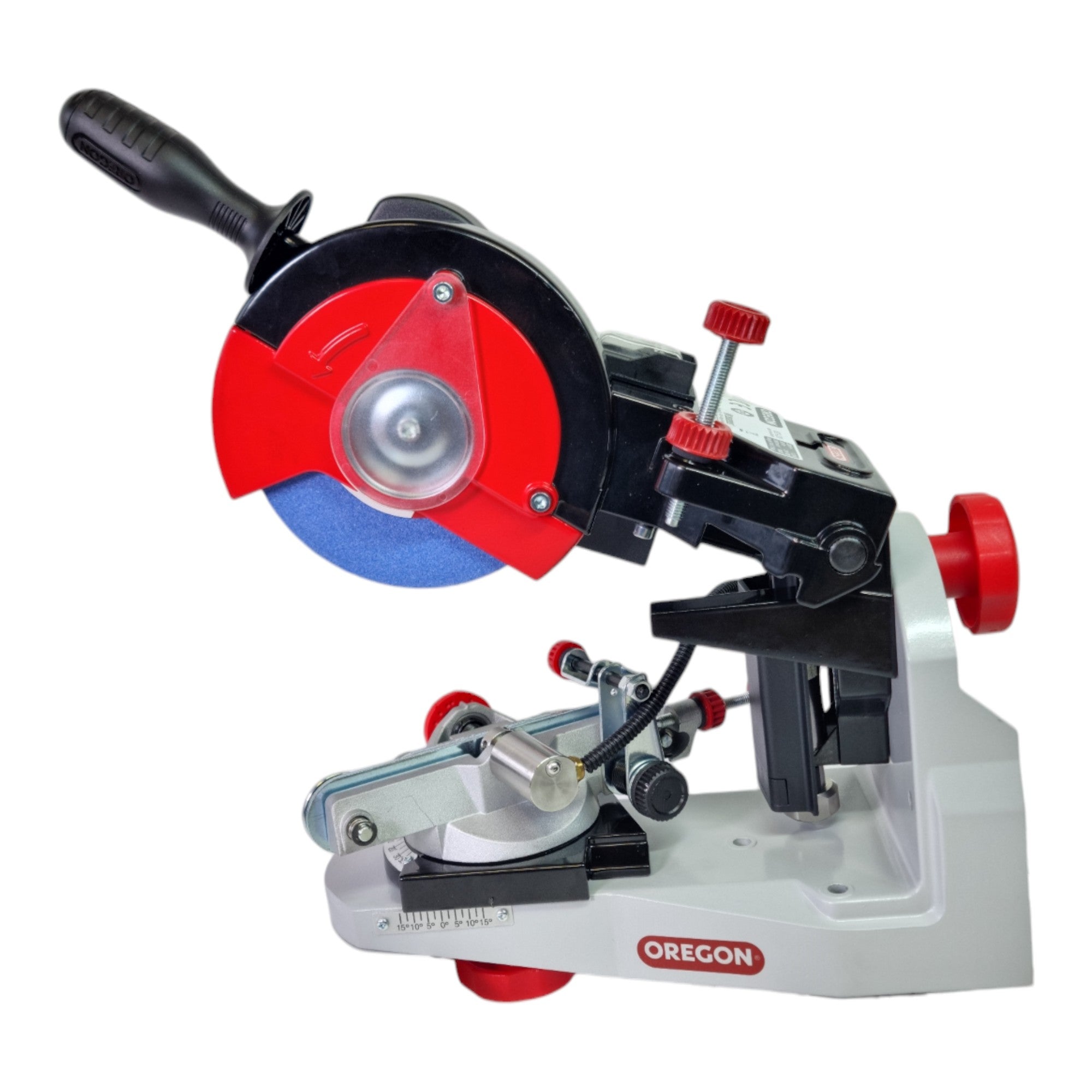 La smerigliatrice Oregon 620-230 è uno strumento potente e professionale per l'affilatura precisa delle catene di seghe, ideale per grandi quantità e per un uso intensivo. Grazie al supporto idraulico, la morsa viene bloccata automaticamente e senza regolazione manuale, facilitando così il lavoro. Con la sua capacità per tutti i tipi di catena, la macchina affila senza fatica catene fino a 3/4" e consente una regolazione precisa grazie all'ampio campo di serraggio e alle chiare marcature. La fornitura comprende tre dischi di rettifica, una dima rapida e una pietra per la ravvivatura, in modo da essere subito pronti all'uso. La struttura robusta con azionamento diretto (230 V, 214 W) e un'altezza di 48 cm garantisce stabilità e durata. Grazie alle sue prestazioni affidabili e alla maneggevolezza, la Oregon 620-230 è la scelta perfetta per i professionisti e le officine che apprezzano l'efficienza e la precisione.