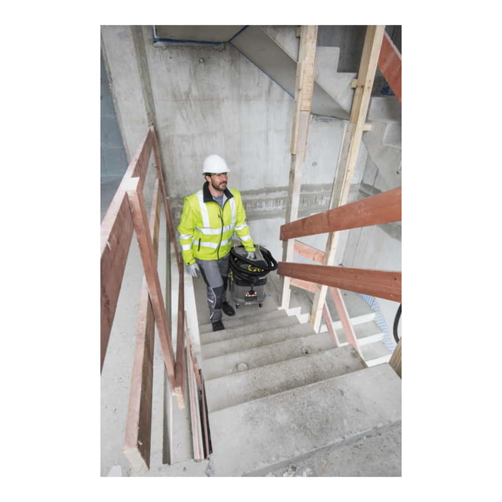 Pulizia del filtro completamente automatica - presa di corrente con interruttore automatico on/off - efficienza di filtrazione testata del 99,9 % - sistema antistatico - sistema eco filter - protezione della circolazione resistente agli urti - classe di polvere M - variante BG Bau