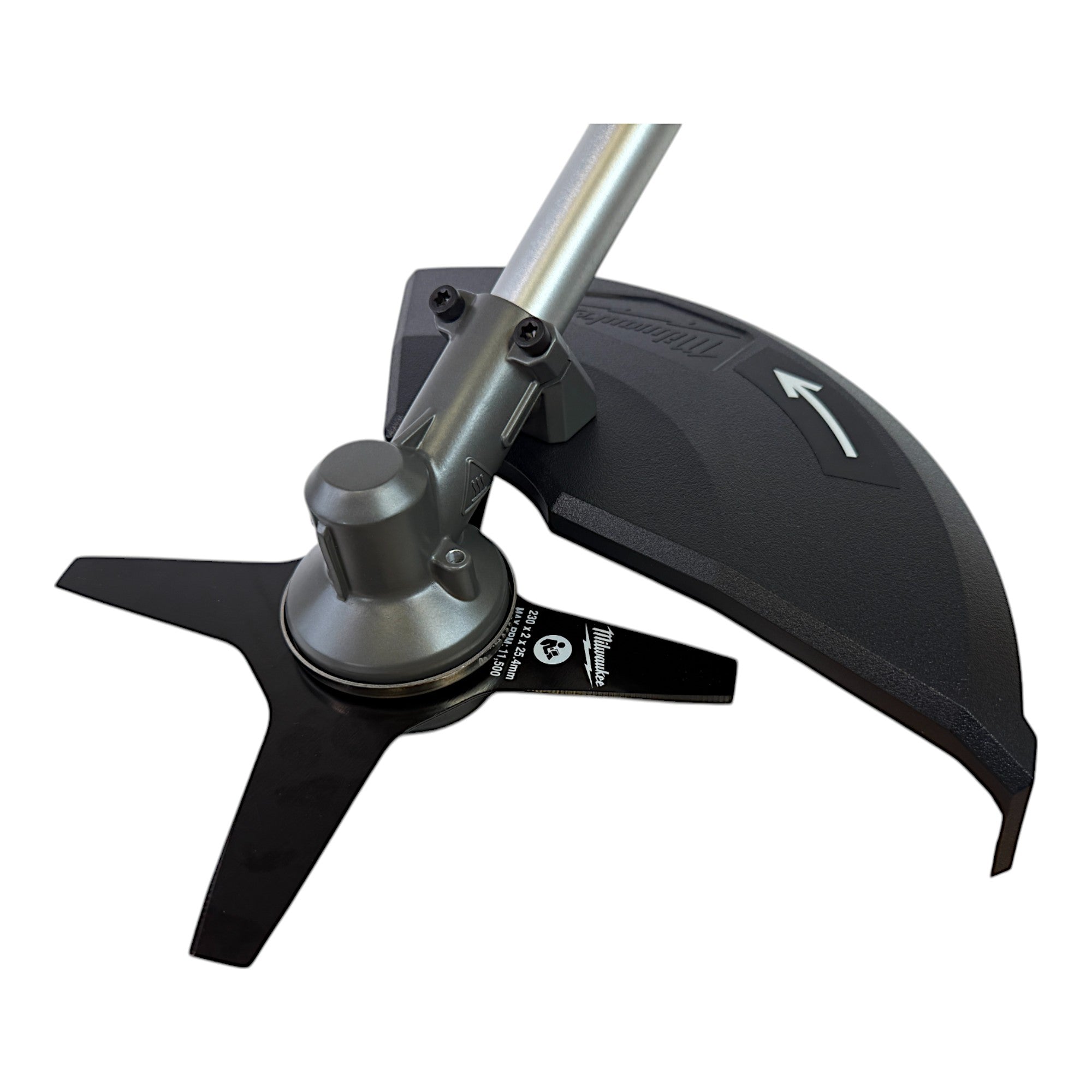 L'accessorio falce Milwaukee M18 FOPH-BCA è stato progettato appositamente per i lavori di pulizia più impegnativi e consente di rimuovere senza fatica erba alta, erbacce, fitto sottobosco e arbusti. Grazie alla lama a 4 denti con un diametro di 23 cm, è possibile pulire in modo efficiente e preciso anche le aree fortemente invase. Il design ottimizzato dello scudo protettivo garantisce maggiore sicurezza e controllo durante il lavoro. Per una gestione comoda e stabile, l'attrezzo è dotato di una seconda impugnatura che garantisce una migliore presa. L'albero di trasmissione protetto aumenta la durata dell'apparecchio e lo rende particolarmente robusto per un uso intensivo. L'apparecchio raggiunge l'accelerazione massima in meno di un secondo, in modo da poter lavorare subito a piena potenza. Questo accessorio è compatibile con il sistema di fissaggio QUIK-LOK della testa elettrica per esterni Milwaukee M18 FUEL e ne amplia notevolmente la gamma di applicazioni.