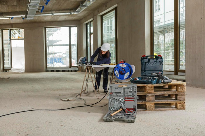 L'avvolgicavo Garant IP44 per uso commerciale/cantiere con 40 m di cavo nel colore blu di Brennenstuhl convince per la sua qualità e sicurezza in tutti i settori. L'avvolgicavo è ideale per l'uso in cantieri e all'aperto. Inoltre, convince per le seguenti caratteristiche: Innovativa maniglia di trasporto ″cablepilot″ per un perfetto passaggio dei cavi. Oscilla su entrambi i lati e consente di trasportare e appendere comodamente il cavo RN è omologato per condizioni di costruzione difficili in conformità alla norma VDE 0100 Parte 704 Con maniglia di rotazione per un comodo avvolgimento Classe di protezione IP44 Lunghezza del cavo 40m Designazione del cavo H07RN-F 3G2.5 Qualità del cavo Gomma-neoprene Colore del cavo Nero Diametro del tamburo 320 mm