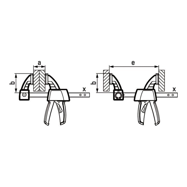 per il bloccaggio e lo spandimento - con forza di bloccaggio fino a 2000 N - riposizionabile per lo spandimento senza attrezzi grazie al meccanismo di sgancio intelligente sulla parte superiore - impugnatura ergonomica in plastica bicomponente stampata dietro la guida