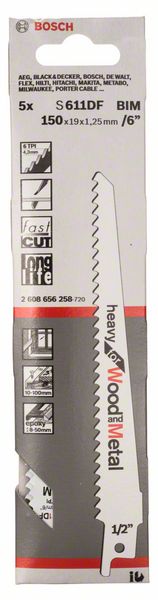 Bosch 5 Säbelsägeblätter 150 mm Heavy for Wood and Metal S 611 DF / S611DF ( 2608656258 )