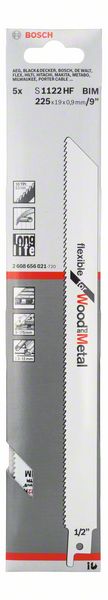 Bosch 5 Säbelsägeblätter 225 mm Flexible for Wood and Metal S 1122 HF / S1122HF ( 2608656021 )