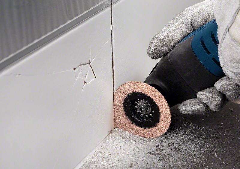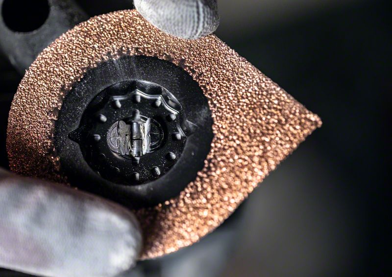 La piastra di rimozione della malta 3 Max AVZ 70 RT4 copre diversi compiti contemporaneamente. È adatta per tagliare le fughe delle piastrelle e può anche essere usato come piastra di levigatura per rimuovere l'adesivo delle piastrelle. Grazie alla sua forma speciale, si può entrare in ogni angolo con facilità. Il tagliente in carburo è molto resistente. Inoltre, l'attacco Starlock assicura la massima trasmissione di potenza e un comodo cambio di lama in pochi secondi e può essere utilizzato con molte macchine grazie al sistema di attacco indipendente dal produttore. La gamma EXPERT di Bosch è l'accessorio più innovativo per gli elettroutensili con vantaggi comprovati in termini di prestazioni per consentire ad ogni artigiano professionista di lavorare con la massima efficienza. Durata estremamente lunga, massima precisione, lavoro alla massima velocità e levigatura senza polvere: tutto questo è possibile con Bosch EXPERT.