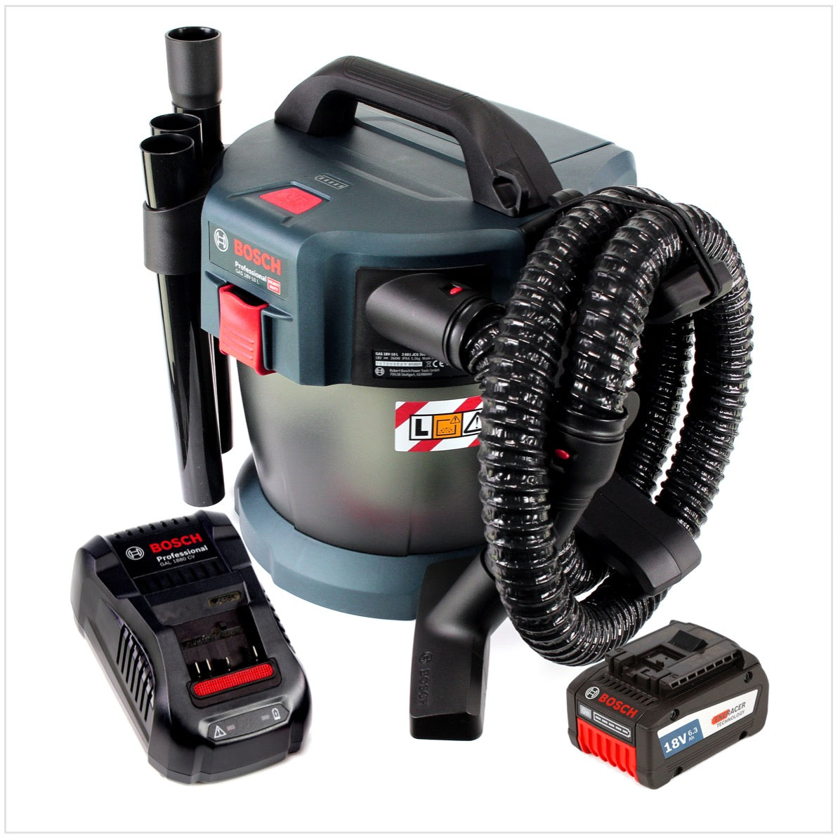 Bosch GAS 18V-10 L Professional Aspiratore a umido / a secco a batteria + 1x Batteria GBA 6,3 Ah EneRacer + Caricabatterie GAL 1880 CV