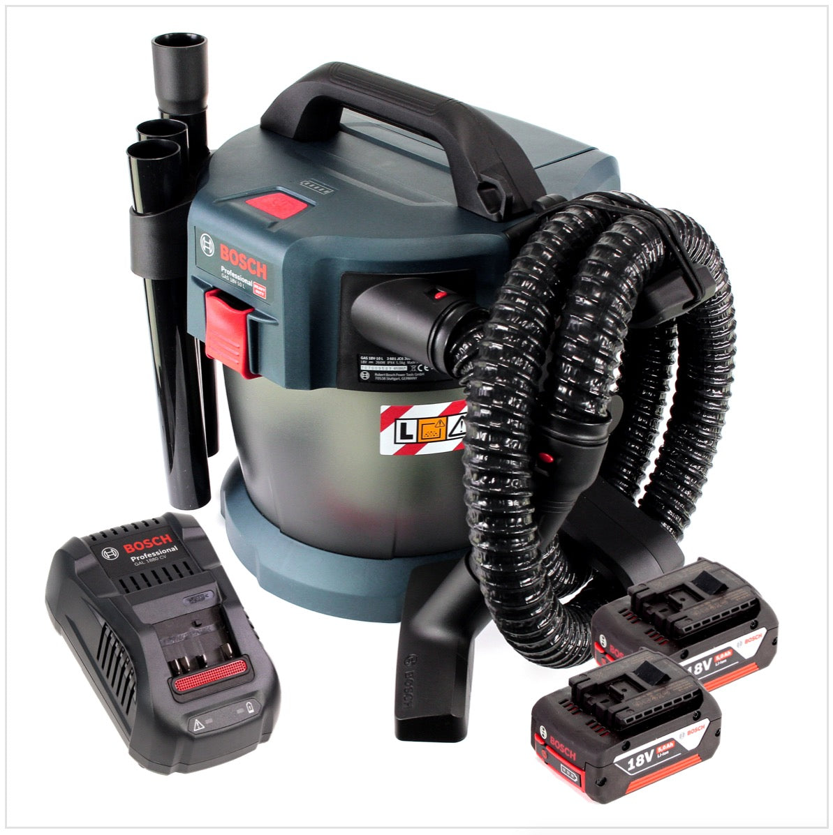 Bosch GAS 18V-10 L Professional Aspiratore a umido / a secco a batteria + 2x Batterie GBA 5,0 Ah + Caricabatterie GAL 1880 CV
