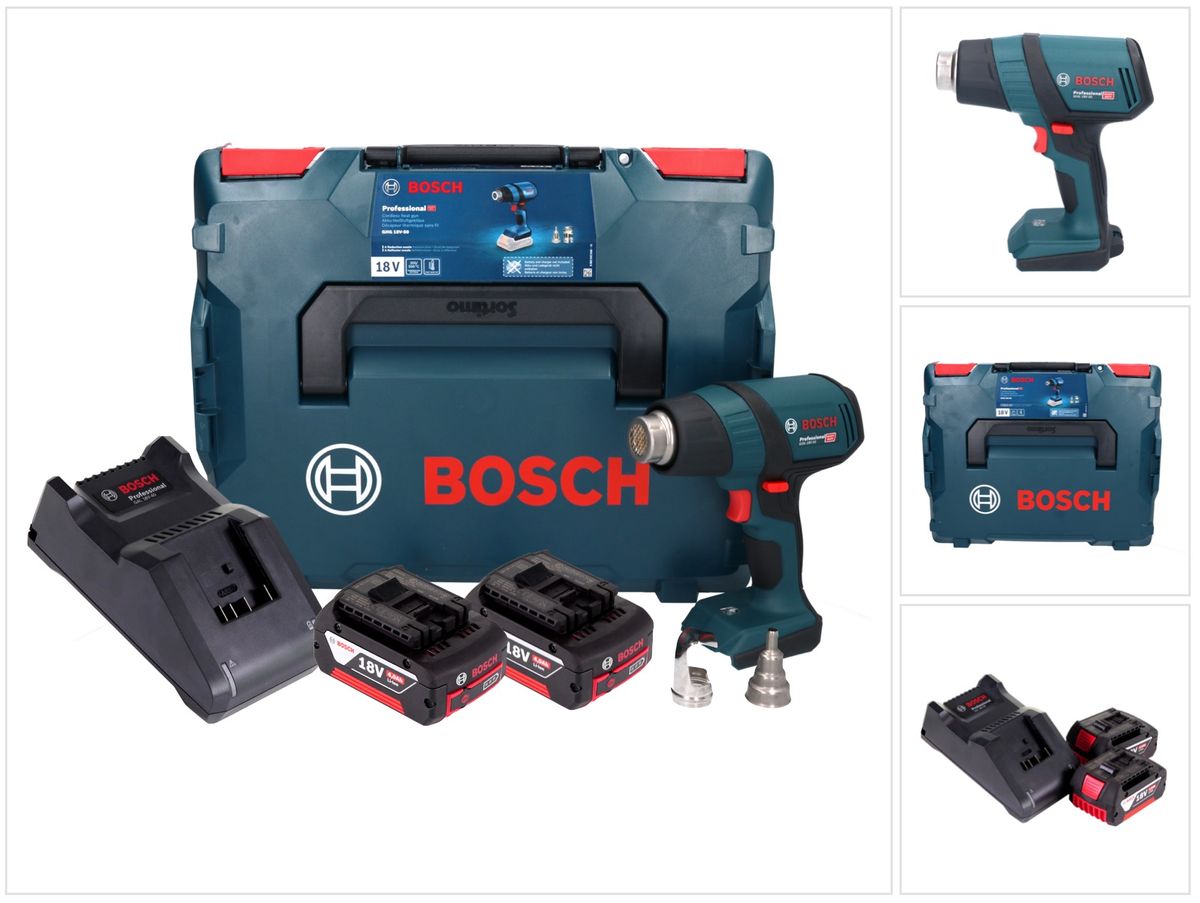 Bosch GHG 18V-50 Soffiatore d'aria calda professionale a batteria 18 V 300° C / 500° C + 2x batteria ricaricabile 4,0 Ah + caricabatterie + L-Boxx