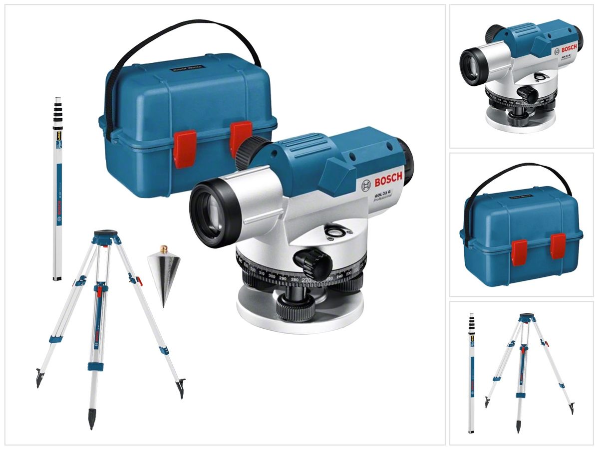 Bosch GOL 32 G Livella ottica professionale 400 Gon 120 m IP 54 ( 06159940AY ) + treppiede BT 160 + righello graduato GR 500 + custodia