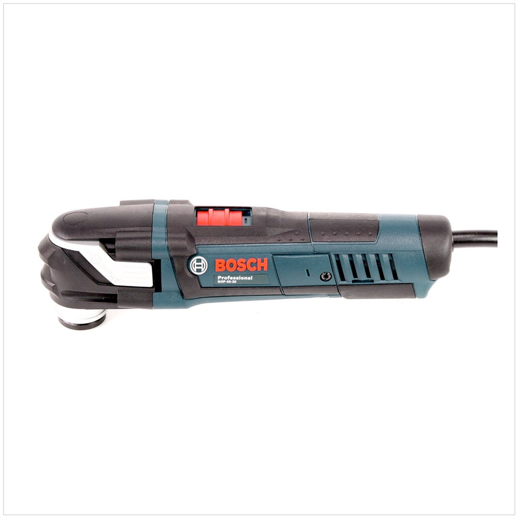 Il GOP 40-30 Professional di Bosch è un multi cutter a filo da 400 watt, adatto a un'ampia gamma di applicazioni con materiali diversi come legno e lamiera. Grazie al sistema Starlock e Starlock PLUS integrato, l'utensile multifunzione consente di cambiare gli accessori senza l'uso di attrezzi in meno di tre secondi. Gli accessori di taglio e di fresatura possono essere sostituiti senza sforzo grazie a uno sgancio rapido integrato. La funzione aggiuntiva di inserimento a scatto consente inoltre di cambiare l'accessorio senza doverlo impugnare, che di solito si surriscalda a causa del pesante avanzamento del lavoro. L'interfaccia 3D garantisce una trasmissione di potenza a bassa perdita dal dispositivo all'accessorio. Il GOP 40-30 è inoltre dotato di Constant Electronic di Bosch, oltre che di un LED luminoso per una migliore illuminazione dell'area di lavoro e di un'impugnatura morbida sull'utensile stesso per un migliore controllo e una presa sicura.