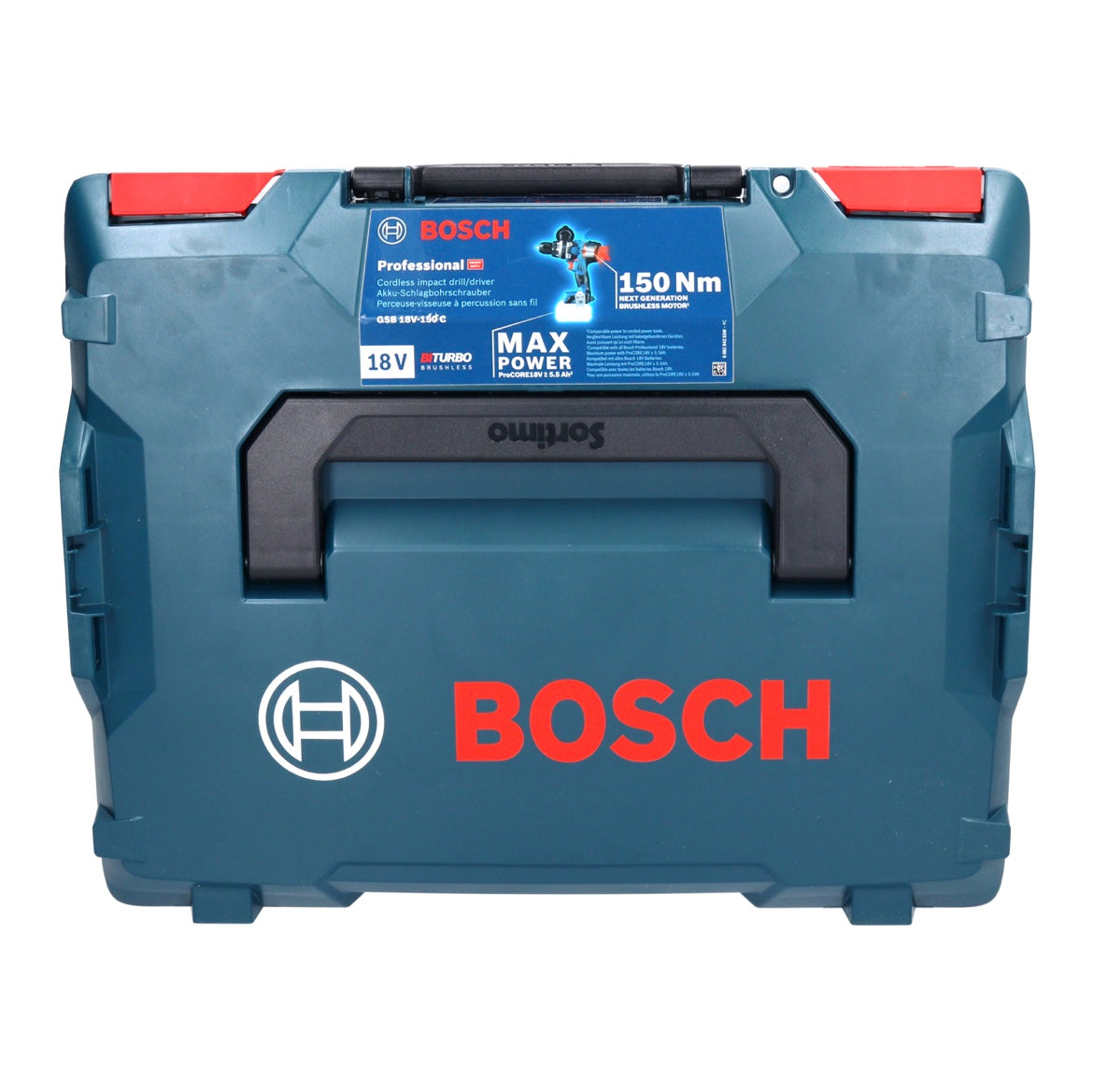 Bosch GSB 18V-150 C Trapano a percussione professionale a batteria 18 V 150 Nm Biturbo Brushless ( 06019J5105 ) + 2x batteria ricaricabile ProCORE 8,0 Ah + caricabatterie + L-Boxx