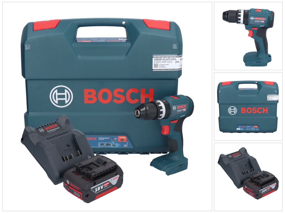 Bosch GSB 18V-45 Professional 18 V 45 Nm Brushless trapano avvitatore a percussione senza filo + 1x batteria 4,0 Ah + caricabatterie + L-Case