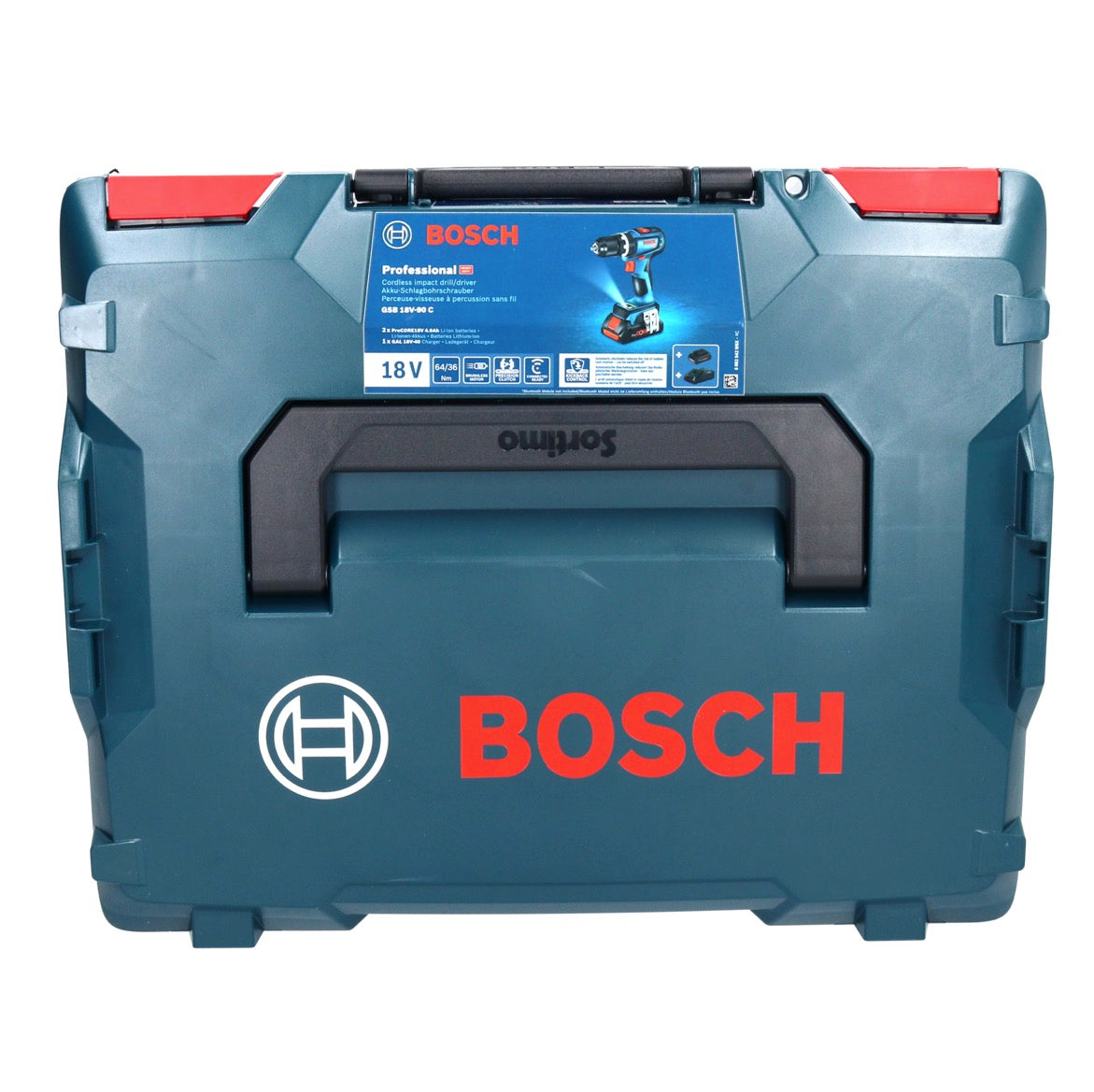 Bosch GSB 18V-90 C Trapano a percussione professionale a batteria 18 V 64 Nm senza spazzole + 2x batteria ricaricabile ProCORE 4,0 Ah + caricabatterie + L-Boxx