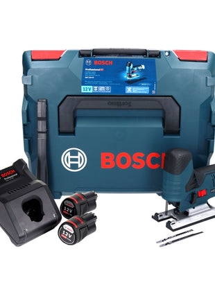 Bosch GST 12V-70 Professional Seghetto alternativo a batteria in valigetta L-Boxx + 2x Batterie GBA 12 V 3,0 Ah + Caricatore GAL 1230 CV