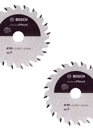 - 2x Bosch Lama per sega circolare Standard for Wood 85 x 1,1 x 15 mm - 20 denti ( 2608837666 )