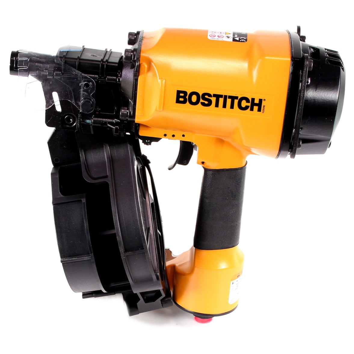 La chiodatrice Bostitch N70CB-1-E colpisce per il grilletto a contatto rapido e il caricatore resistente agli urti. La protezione dell'alloggiamento in acciaio attorno all'apparecchio garantisce una durata lunga di vita utile e l'impugnatura in gomma antiscivolo assicura un lavoro confortevole e sicuro. L'uscita di scarico regolabile a 360° rende il lavoro piacevole e flessibile. I chiodi a bobina Bostitch con gambo ad anello hanno una lunghezza di 64 mm, una dimensione del filo di 2,5 mm, una testa larga 7,2 mm e sono adatti per chiodatrici pneumatiche di vari produttori.