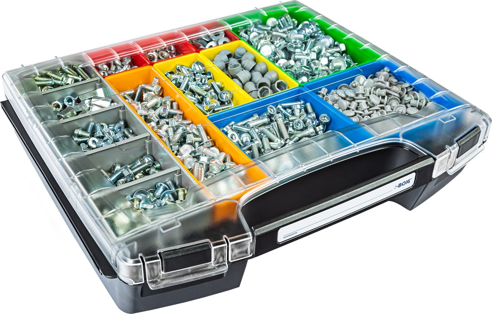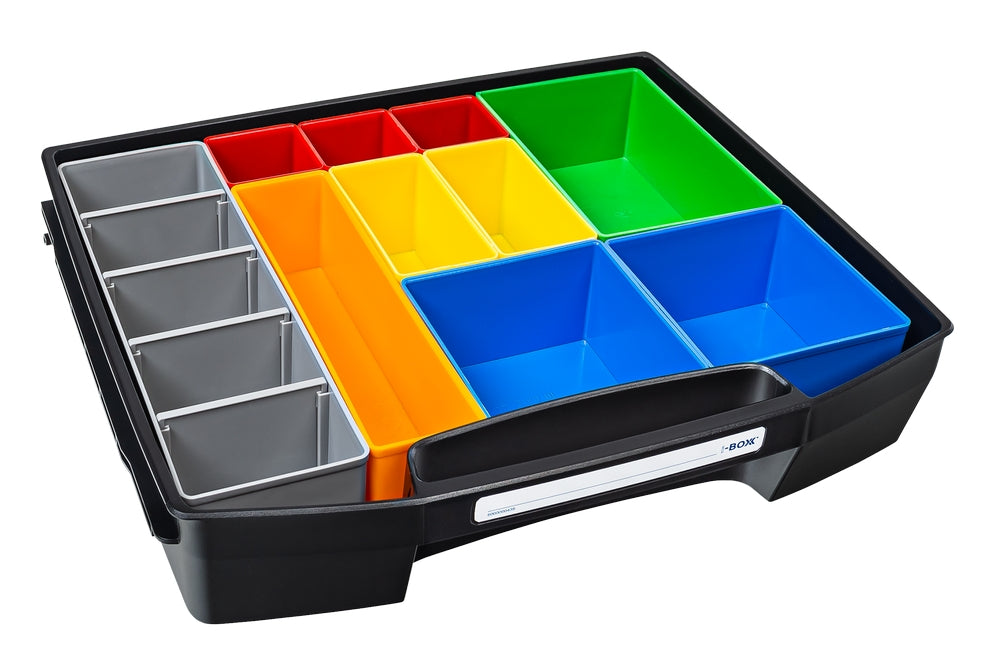 Con il set di Insetbox H3 iB 72 potrete tenere sempre in ordine le vostre piccole parti. Il set contiene insetbox di diverse dimensioni, adatti a un uso versatile. Gli insetbox sono facili da usare in officina o in combinazione con il sistema L-BOXX o ProClick. Il fissaggio sicuro e attraente è garantito ovunque.