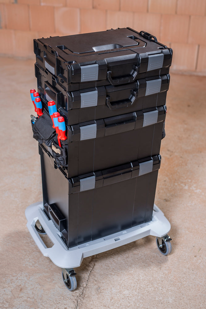 Il Roller L-BOXX è la soluzione perfetta per il trasporto mobile dei vostri L-BOXX. La pratica piattaforma mobile a 4 ruote consente di agganciare in modo intuitivo le cassette degli attrezzi e di portarle sul posto di lavoro in modo sicuro e senza sforzo. La ruota è realizzata in plastica robusta e dispone di quattro ruote piroettanti per una facile manovrabilità. Due delle ruote possono essere bloccate con il freno di stazionamento per garantire la stabilità. In questo modo gli utensili sono sempre a portata di mano e possono essere trasportati facilmente sul posto di lavoro.