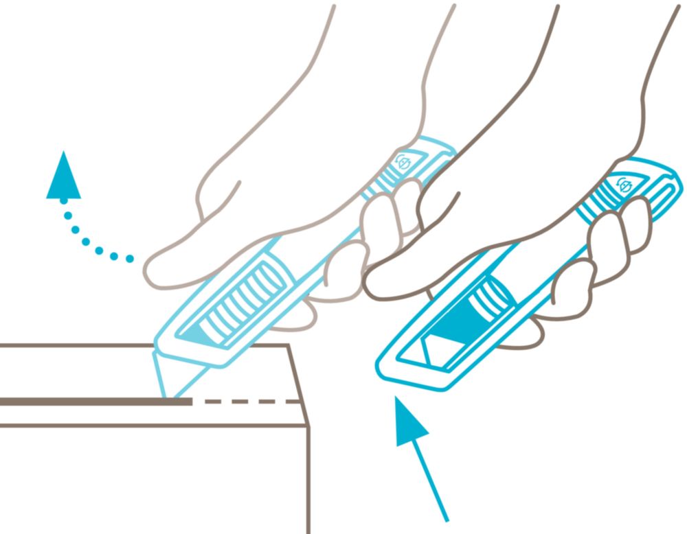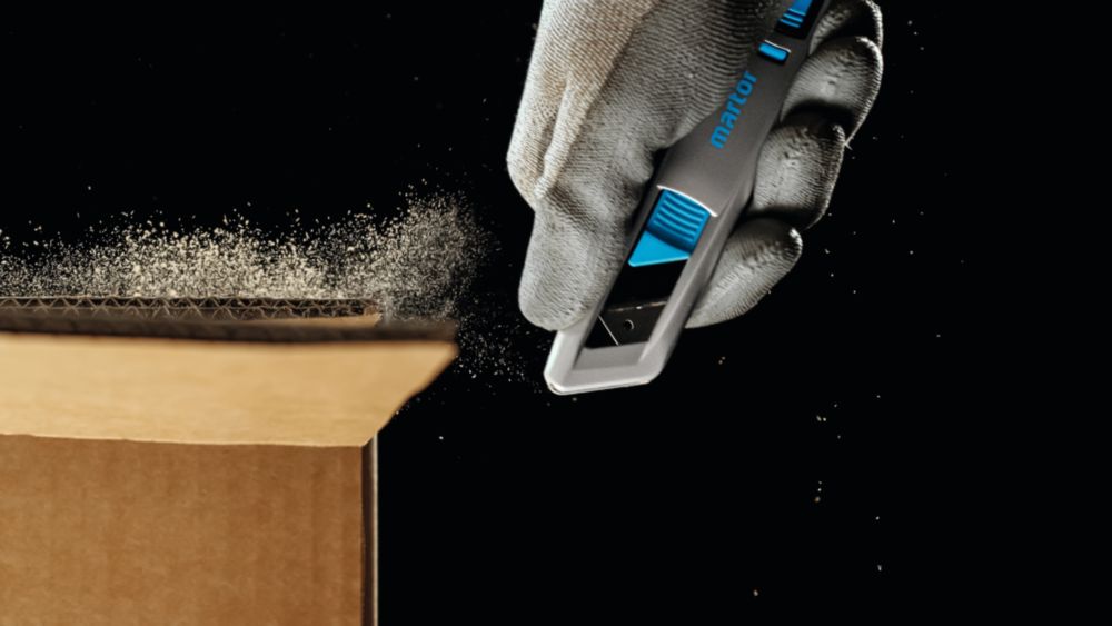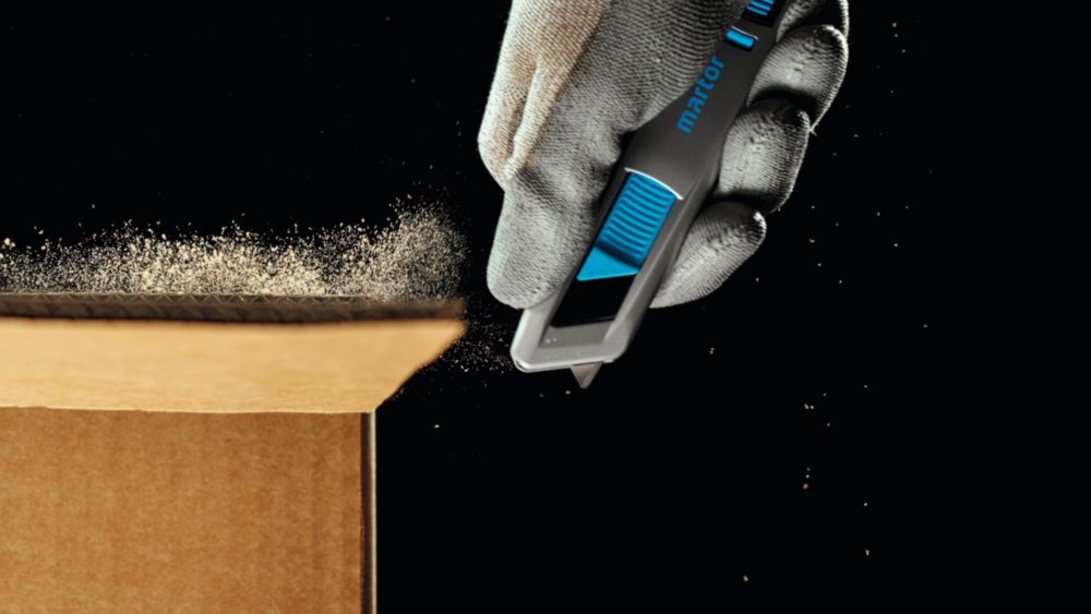 impugnatura in alluminio estremamente ergonomica per una migliore maneggevolezza e un lavoro più confortevole - ulteriore sviluppo del classico SECUNORM PROFI MARTOR - cursore flessibile azionabile da entrambi i lati - grande profondità di taglio per scatole di cartone a 3 strati, pellicole, reggette, ecc. - Facile sostituzione della lama con il pulsante di cambio lama - Per destrimani e mancini
