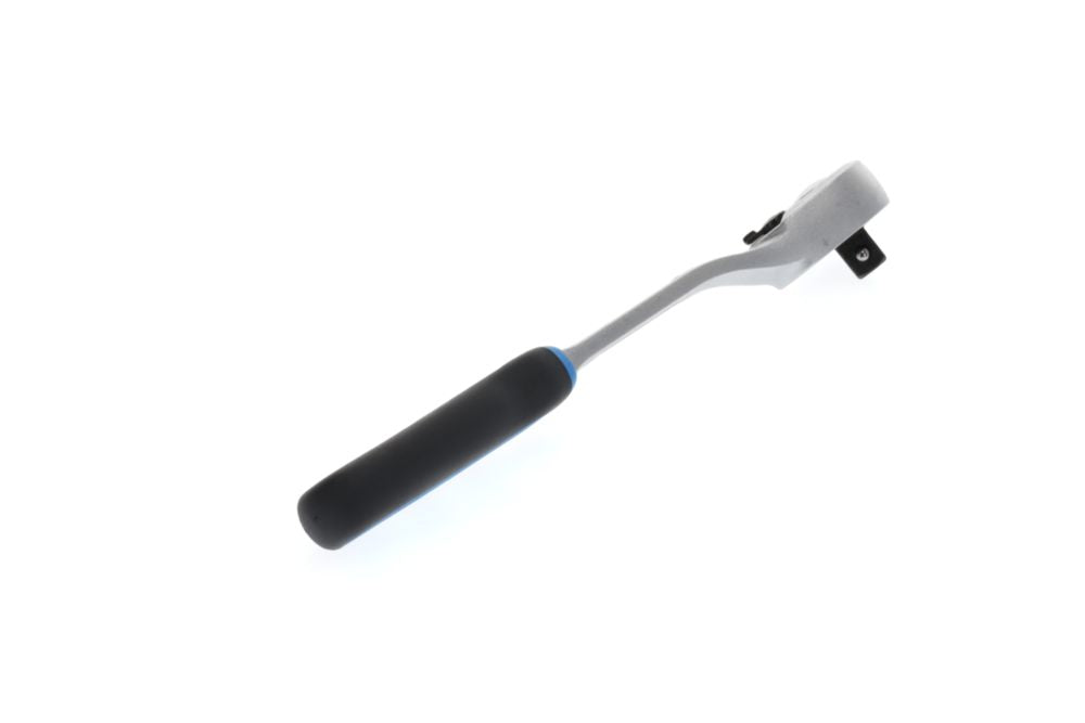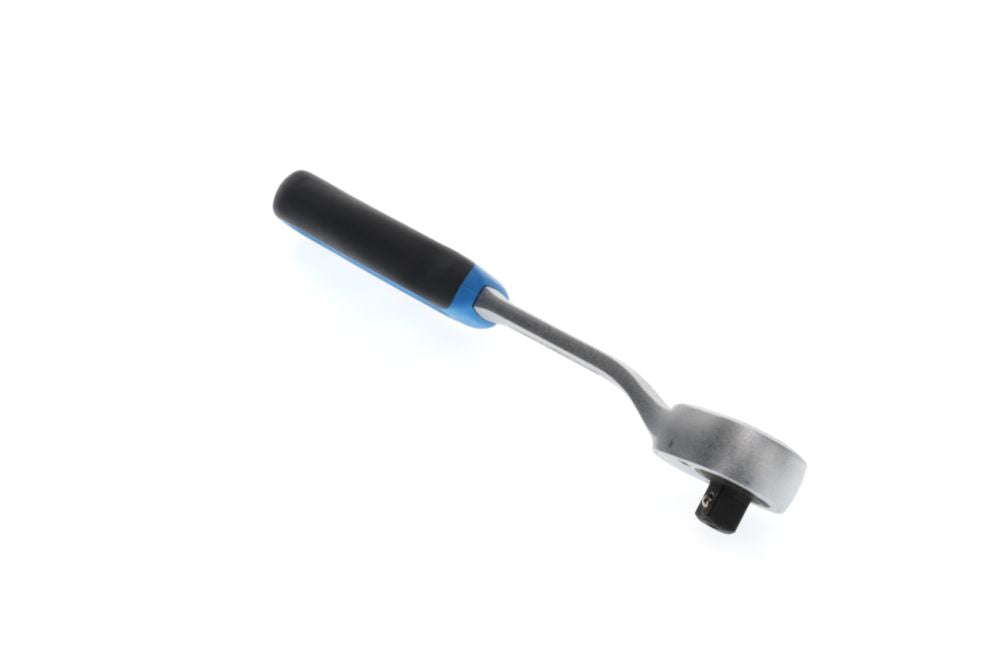 Attacco quadro da 12,5 mm (1/2″) - Acciaio CV - Impugnatura a 2 componenti - Funzione di bloccaggio del dado con rilascio a pulsante Vantaggi speciali del prodotto: - Gambo a gomito per i punti più difficili da raggiungere - Maggiore libertà per le dita durante l'avvitamento su superfici piane - Testa piccola a forma di goccia per i punti di avvitamento più stretti - Angolo di rotazione 6° 60 denti DIN 3122 / ISO 3315