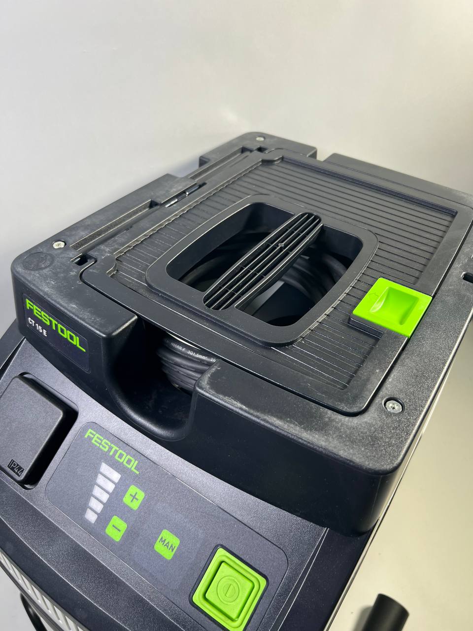 Die Firma Festool bietet mit dem CLEANTEC CT 15 E ein Absaugmobil, dass mit seinen 15 Liter ausreichend Behältervolumen bietet um seine Baustelle, Werkstatt oder Büro sauber zu halten. Die regulierbare Hochleistungsturbine gewährleistet hierbei stets eine hohe Saugleistung. Dank seiner kompakten Bauform lässt sich das Behältervolumen fast vollständig ausnutzen - für langes Arbeiten ohne Filtersackwechsel. Mit den im Lieferumfang enthaltenen Fugen- und Polsterdüsen sind Sie direkt einsatzbereit. Aufgrund seiner kompakten Maße, geringem Gewicht und robustem Fahrwerk mit Stahlachsen lässt er sich sehr leicht zum nächsten Einsatzort bringen. Mit der neuen Touch-Bedienfläche bringt der CT 15 E eine vereinfachtere und intuitivere Steuerung mit sich. Dardurch dass das Reinigungszubehör innerhalb des Absaugmobils verstaut wird, bietet sich die Oberseite ideal als Ablage von Arbeitsmaterialien an. Auch der Filterwechsel stellt sich super leicht heraus - einfach von außen heraus ziehen, neuen Filter einstecken, fertig. Da es sich hier um die Set Variante des Staubsaugers handelt, finden sich auch noch einige zusätzliche Düsen und Verlängerungsrohre im Lieferumfang um den Einsatzbereich des Absaugmobils weiter zu vergrößern und überall hinzukommen. Die Firma Festool ist ein Premium Werkzeughersteller der sich vor allem durch seine hohe Verarbeitungsqualität und seine ausgeklügelten Konzepte auszeichnet.