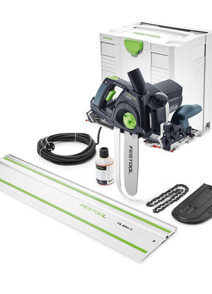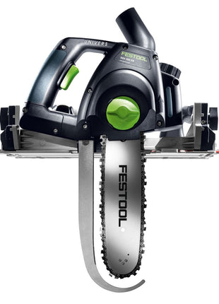 La sega a gattuccio SSU 200 EB-Plus FS UNIVERS è l'innovativo tuttofare di Festool. Che si tratti di legno o materiali isolanti, la sega a gattuccio UNIVERS SSU 200 taglia tutti i materiali comuni utilizzati nell'edilizia in legno fino a uno spessore di 200 mm. Grazie alla guida, è possibile eseguire senza problemi tagli diritti, tagli trasversali, longitudinali, obliqui e di smussatura senza sbavature. La sega a gattuccio pesa solo 6,5 kg ed è completamente riposta nel SYSTAINER SYS 5 T - LOC, consentendo così un facile utilizzo in cantiere o durante il montaggio. Grazie al campo di rotazione di 60°, la SSU 200 è adatta anche per tagli obliqui estremi. La scanalatura di guida integrata nel tavolo in alluminio pressofuso, in combinazione con la guida, consente tagli precisi, proprio ciò che serve nella costruzione in legno. La finestra nella copertura di protezione consente di avere sempre sotto controllo il tracciato e il taglio, garantendo il massimo controllo possibile. La profondità di taglio a 45° è di 140 mm, a 60° è di 100 mm. La funzione FastFix consente di sostituire la catena senza attrezzi in pochi semplici passaggi, anche la tensione della catena sull'apparecchio avviene senza attrezzi ruotando la ruota di tensionamento. Il lavoro adeguato al materiale è garantito dall'elettronica MMC, che adatta la regolazione della velocità al materiale. La protezione da sovraccarico e il freno di sicurezza proteggono la macchina e offrono un elevato livello di sicurezza. Grazie al controllo del livello dell'olio, è sempre possibile sapere quando è necessario rabboccare il lubrificante della catena. Sulla maniglia è presente una rotella che consente di regolare la lubrificazione ottimale della catena e di spegnerla durante le pause. Grazie alle ganasce di guida montabili senza attrezzi, non vi è alcun gioco durante la guida della sega, garantendo tagli precisi ai massimi livelli. Il sistema di serraggio FS - Rapid mantiene la guida nella posizione corretta, ovvero sul segno di incisione. Grazie alla limitazione della corrente di avviamento, è possibile avviare la macchina senza problemi con i dispositivi di sicurezza domestici. Il collegamento di aspiratori mobili garantisce un ambiente di lavoro salubre. Il raccordo di aspirazione può essere ruotato di 360° e non costituisce quindi un ostacolo durante il lavoro.