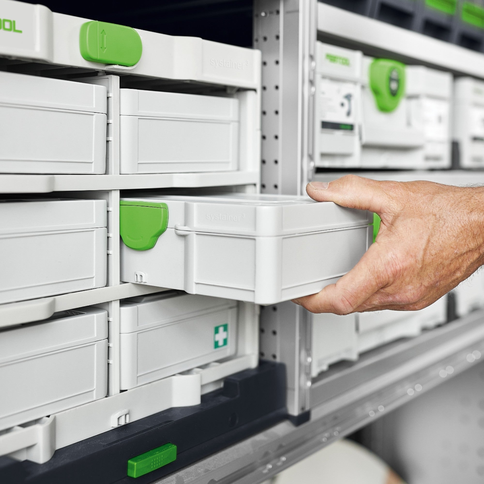 Il Systainer³ SYS3 S 76 TRA è la soluzione perfetta per conservare in modo ordinato e organizzato piccoli pezzi e accessori. Grazie al peso ridotto e alla pratica maniglia, è facile da trasportare. I divisori flessibili consentono di suddividere l'interno individualmente per ottenere un'organizzazione ottimale. Il coperchio trasparente offre una rapida panoramica del contenuto senza dover aprire il Systainer. Il Systainer³ SYS3 S 76 offre anche opzioni modulari: È compatibile con SYS-MINI 1 e 3 TL e può essere combinato con il Systainer³ Rack per riporre fino a sei Systainer³ S 76 come su uno scaffale. Questa configurazione può anche essere integrata nel sistema di scaffalature per furgoni bott vario3, che rende l'uso mobile ancora più efficiente. Per una maggiore organizzazione, è possibile utilizzare gli inserti universali disponibili separatamente, progettati appositamente per lo stoccaggio di piccoli pezzi. Questo Systainer è ideale per gli artigiani e gli altri professionisti che desiderano tenere gli attrezzi e gli accessori organizzati e a portata di mano. Nonostante le sue dimensioni compatte, offre la massima flessibilità e organizzazione. Si noti che il Systainer³ SYS3 S 76 non può essere combinato con il Systainer³, il Systainer T-LOC o il Systainer Classic.