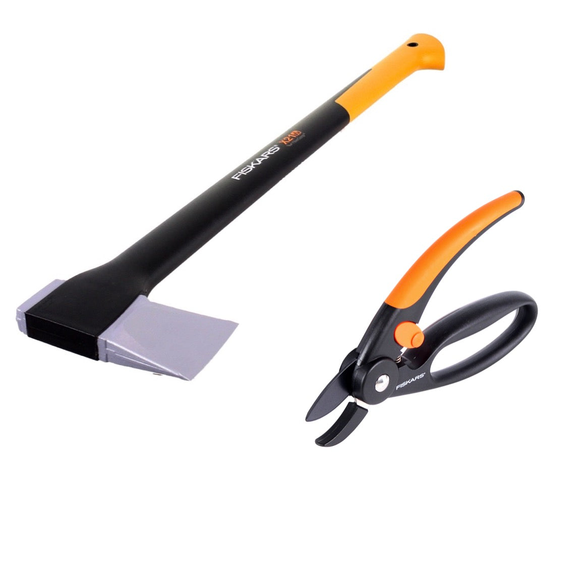 Fiskars X21 Axt Spaltaxt - L 3D 71cm 1,6kg ( 1015642 ) + Fiskars P43 Amboss Gartenschere Elegance Fingerloop 20mm ( 1001535 )