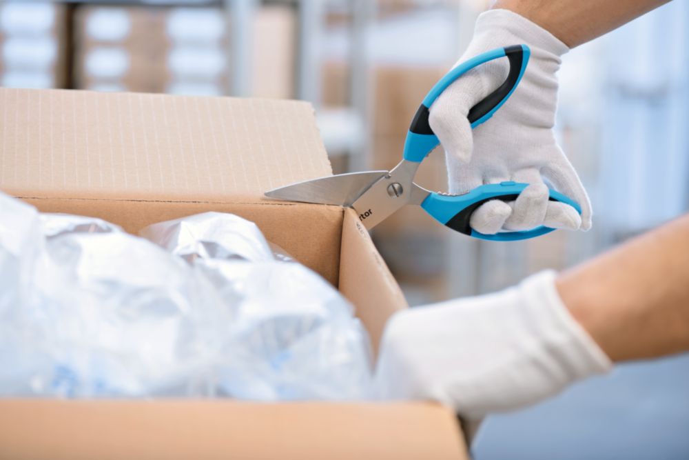 forbici di sicurezza grandi con affilatura speciale adatta alle dita e molti extra - il tuttofare per il lavoro e la casa - il nostro strumento multiuso per il taglio professionale - ideale per le mani più grandi o per chi lavora con i guanti - cartone, carta, pellicola, tessuto e molto altro ancora non hanno nulla da invidiare ai suoi tagli potenti - ma voi siete ben protetti - grazie all'affilatura speciale e alle punte arrotondate - usate l'intaglio aggiuntivo per tagliare fili e cavi, gli artigli sul manico per aprire le chiusure
