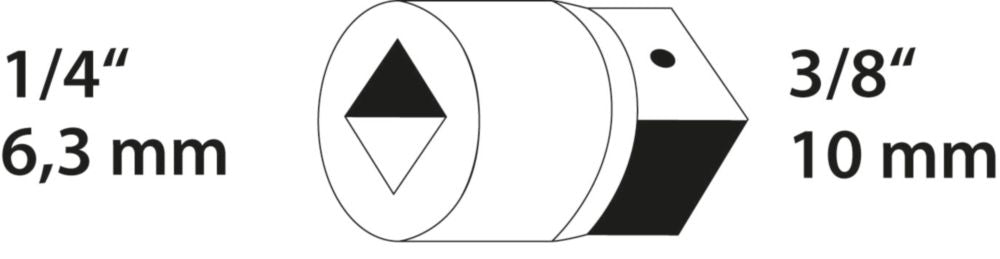 Attacco quadro da 6,3 mm (1/4 ″) - per chiavi a bussola ad azionamento manuale - con bloccaggio a sfera - acciaio al vanadio - cromato - Attacco quadro da 6,3 mm (1/4 ″) a 10 mm (3/8 ″) DIN 3123 / ISO 3316