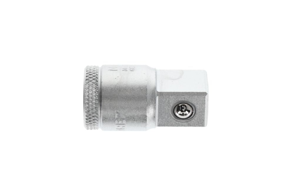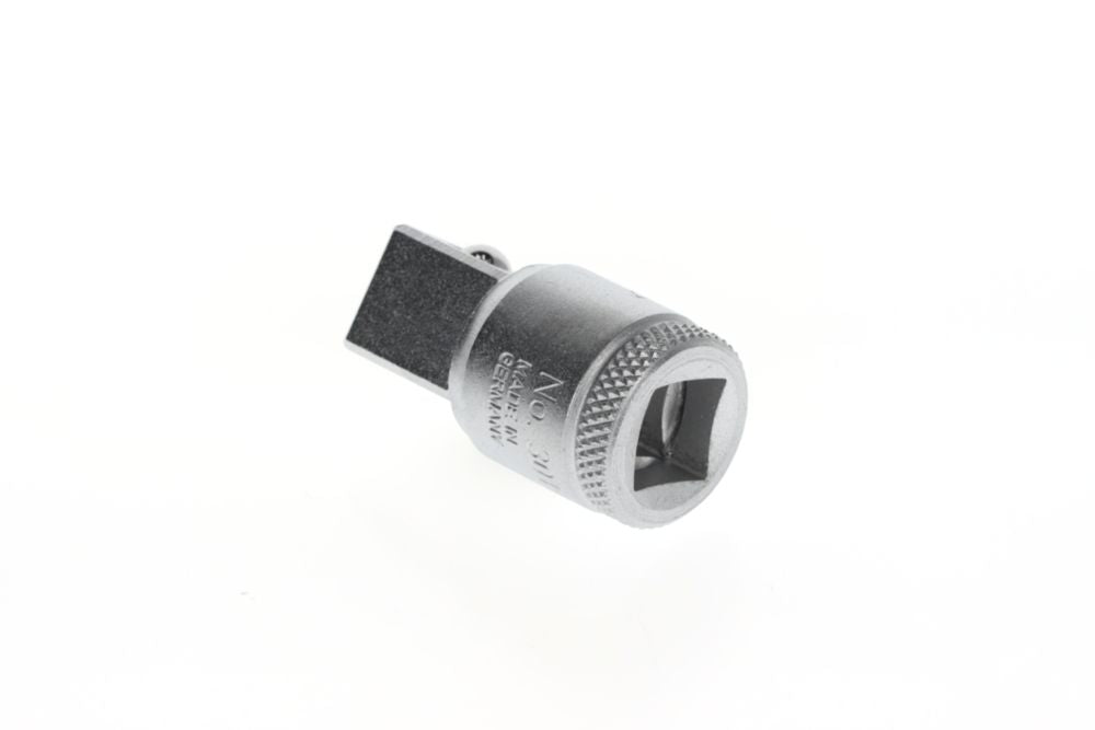 Attacco quadro da 10 mm (3/8″) - per chiavi a bussola ad azionamento manuale - con bloccaggio a sfera - acciaio al vanadio - cromato Attacco quadro da 10 mm (3/8″) a 12,5 mm (1/2″) - Attacco quadro DIN 3123 / ISO 3316 Secondo DIN 3120 / ISO 1174
