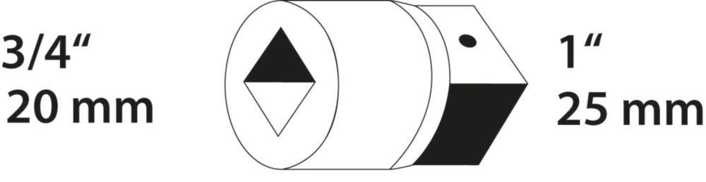 Attacco quadro da 20 mm (3/4″) - per bussole ad azionamento manuale - con blocco del perno - acciaio al vanadio - cromato - zigrinato Attacco quadro interno da 20 mm (3/4″) a 25 mm (1″) attacco quadro esterno - DIN 3123 / ISO 3316