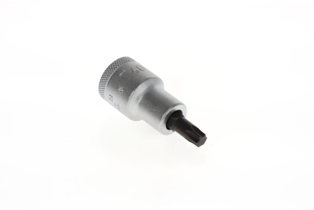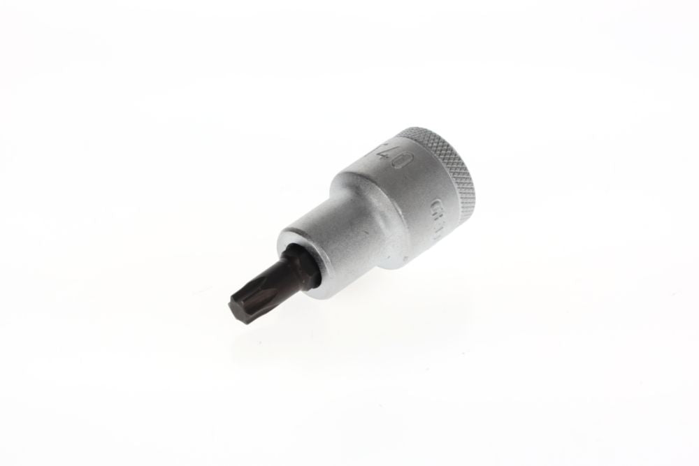 Attacco quadro da 12,5 mm (1/2″) - per viti con profilo TORX® interno - inserto in acciaio al vanadio - lama in acciaio speciale brunito - zigrinatura con scanalatura per il bloccaggio della sfera - DIN 3120 / ISO 1174
