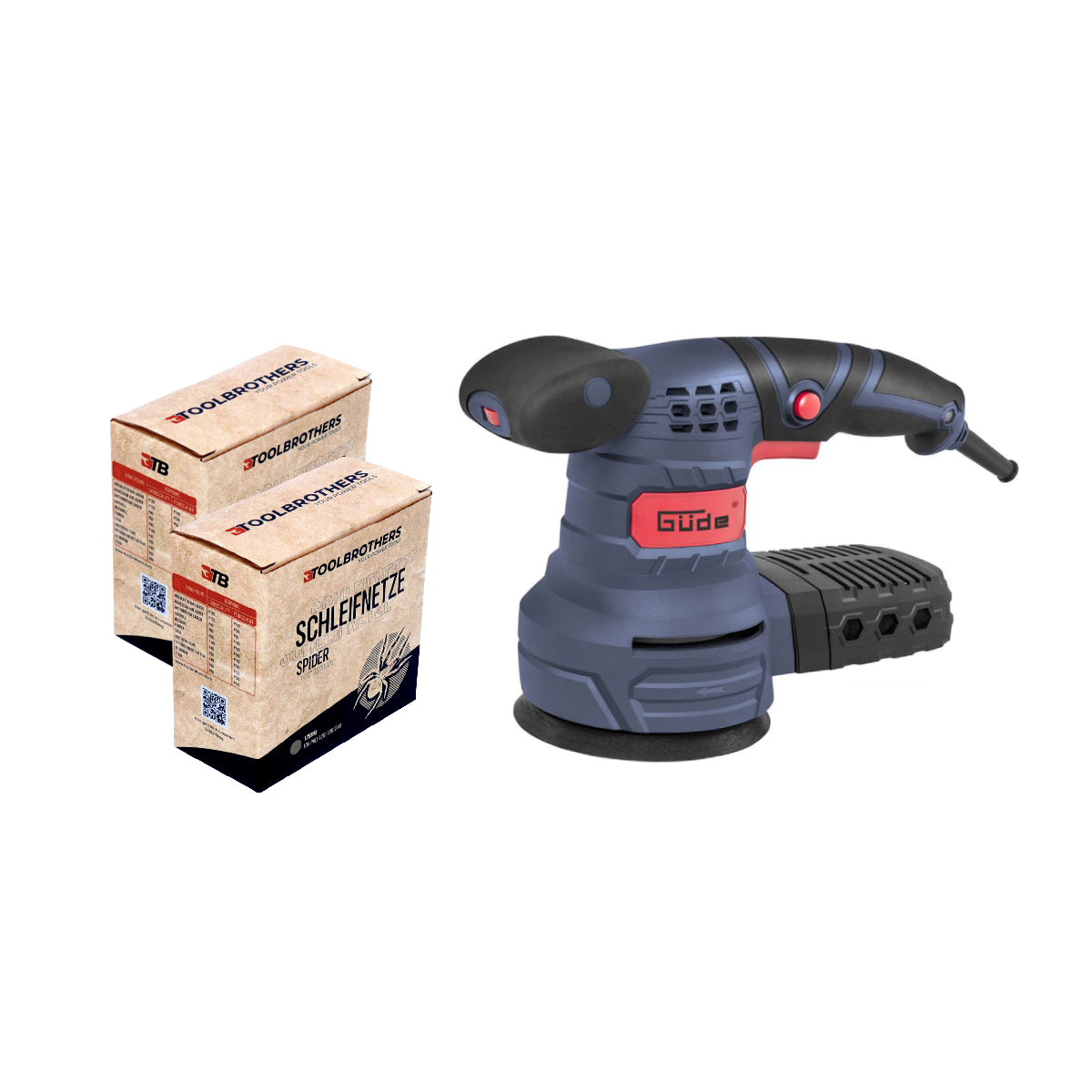 Güde EXS 125 E Exzenterschleifer 380 Watt 125 mm ( 58130 ) + 2x Toolbrothers SPIDER Netzschleifmittel Set