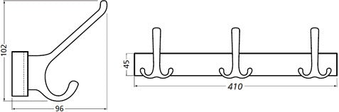 Gancio in metallo leggero - anodizzato color argento - montato su listello profilato - 2 punti di fissaggio nascosti sul retro (fornito senza viti o tasselli!) - sporgenza 96 mm - altezza 102 mm